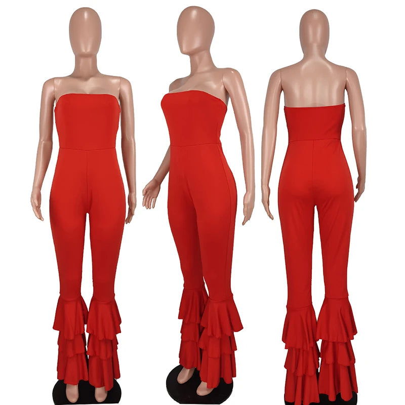 Cyflymder Women Strapless Bodycon Sexy Casual Jumpsuit Red Fashion New Backless Rompers Stacked Flared Pants Streetwear Overalls One Piece