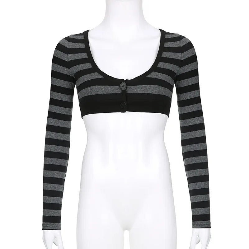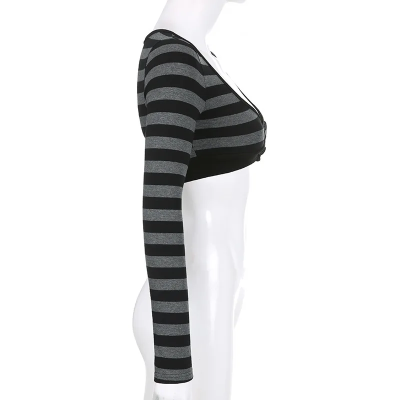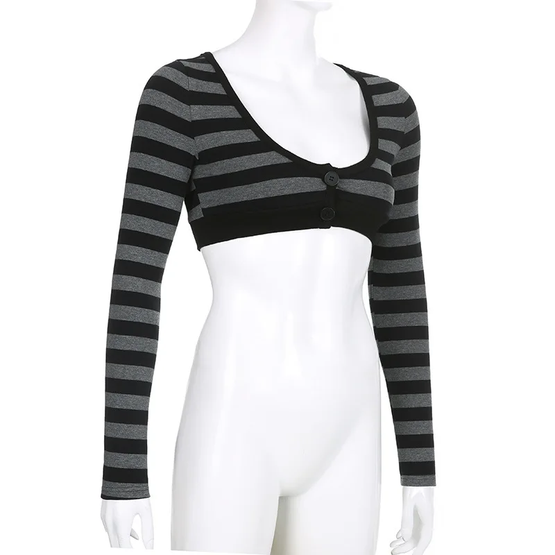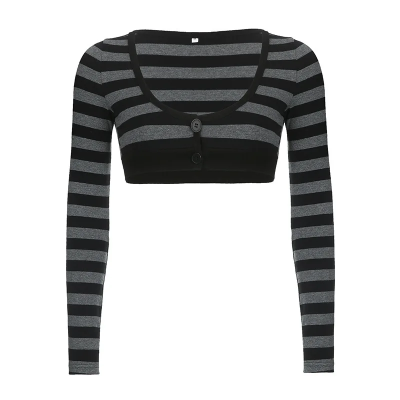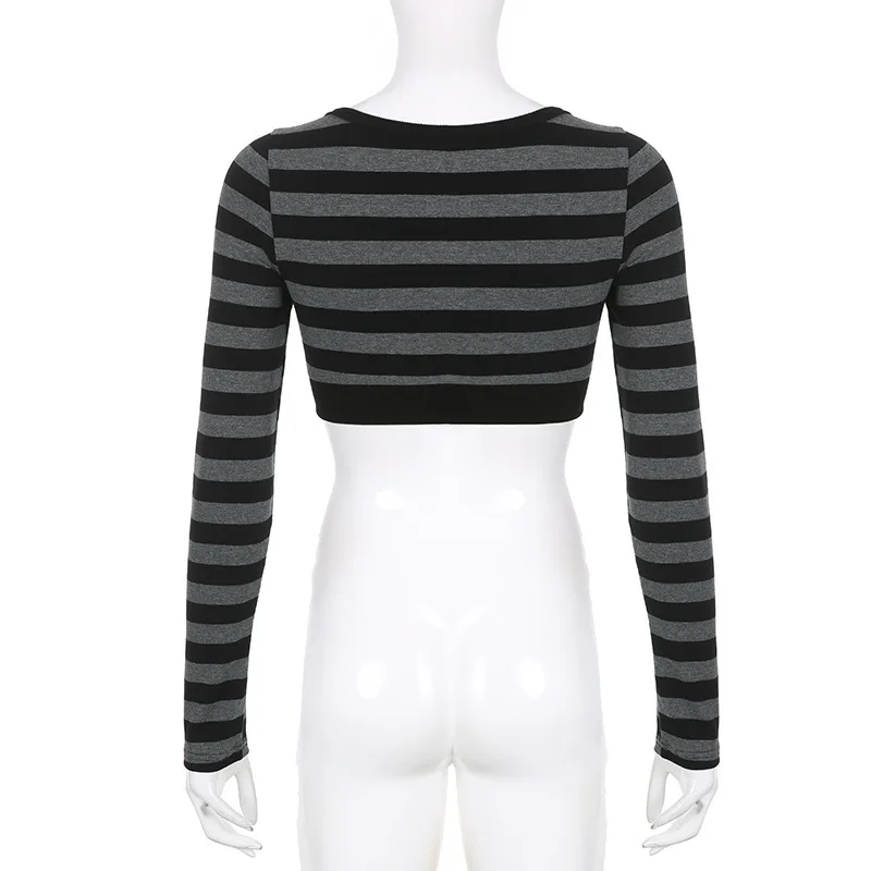 Cyflymder Women Striped Long Sleeve Navel T-shirt Summer New Streetwear Fashion Slim Short Tees Female Clothing Versatile Sports Crop Tops
