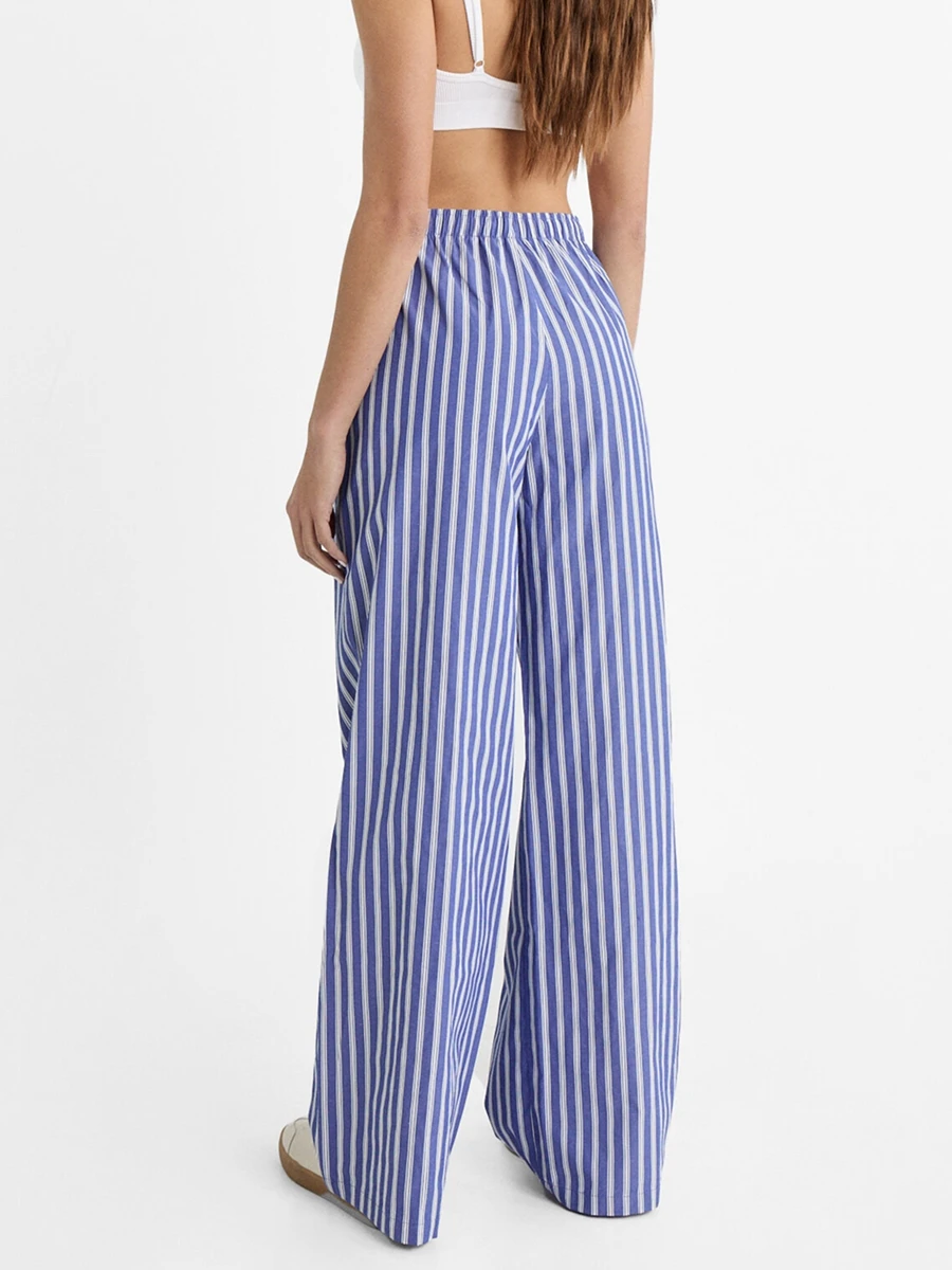 Cyflymder Women Striped Pajama Pants Elastic Waist Straight Wide Leg Trousers Casual Loose Fit Going Out Bottoms with Pockets
