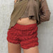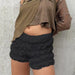 Cyflymder Women Summer Casual Solid Color Shorts Mid Elastic Waist Ruched Short Pants for Streetwear Slim Fit Lounge Bottoms
