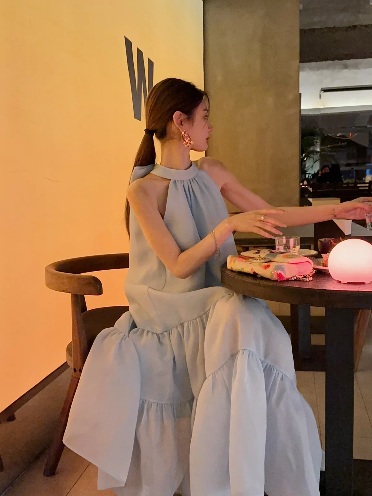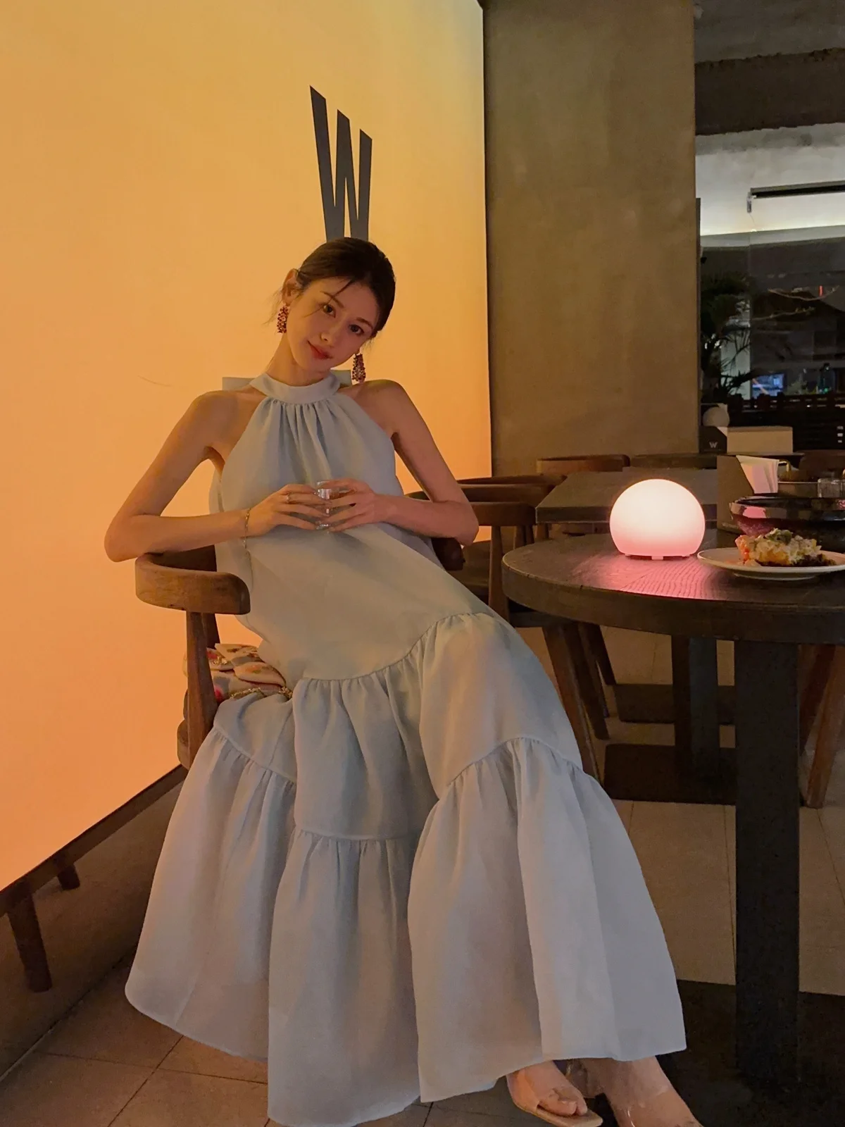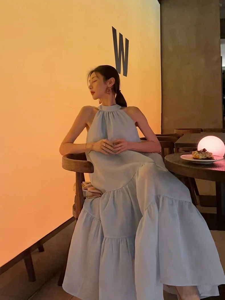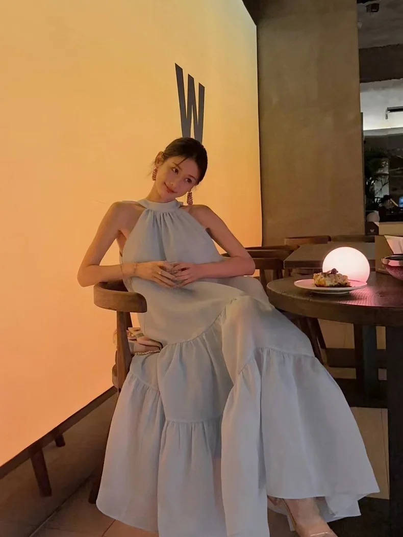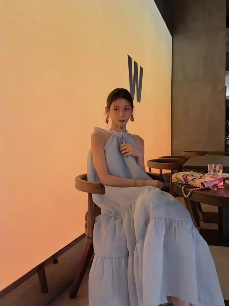 Cyflymder Women Summer Halter Bow Blue Long Dress kawaii vestidos de fiesta prom deesses платье корейский стиль veatido elegante