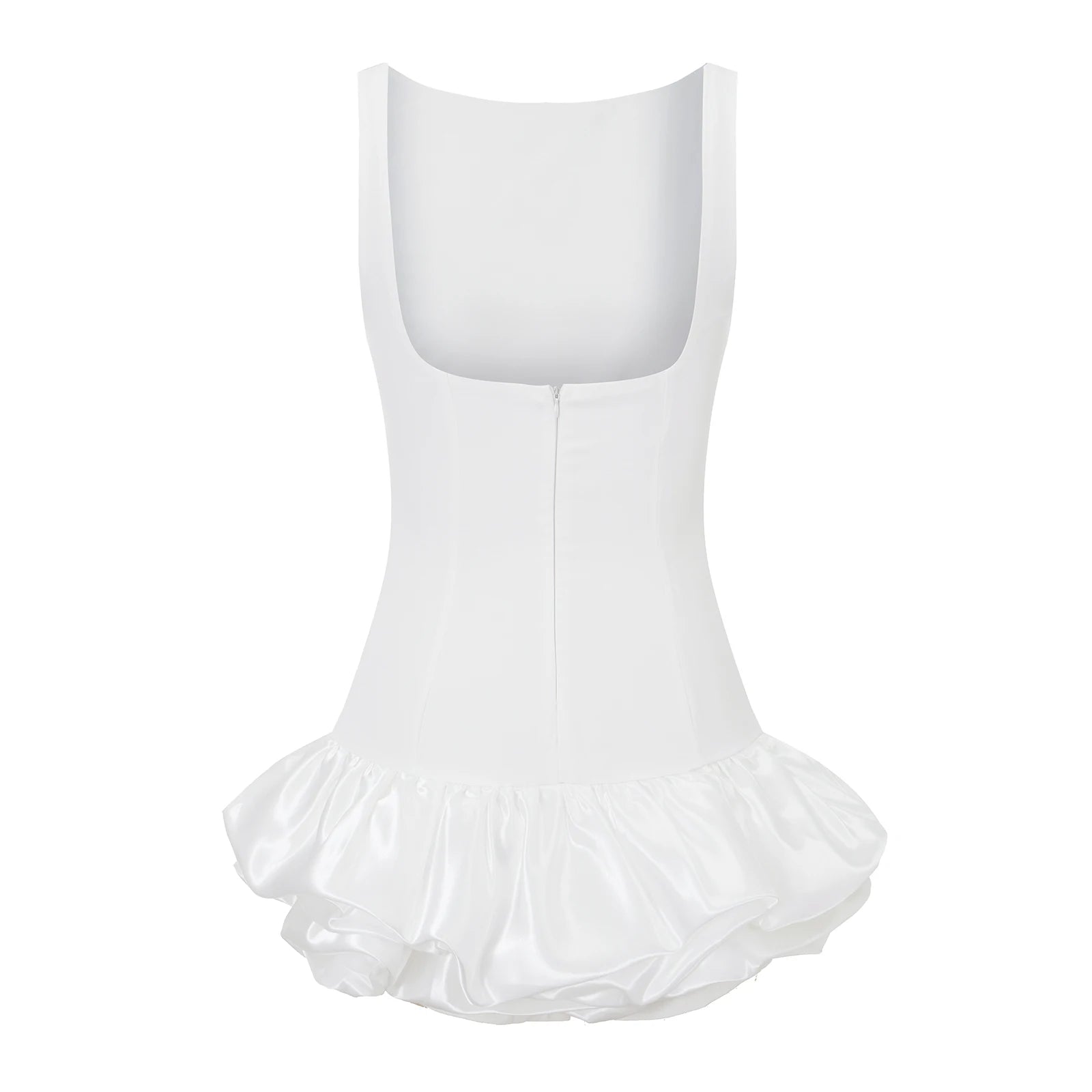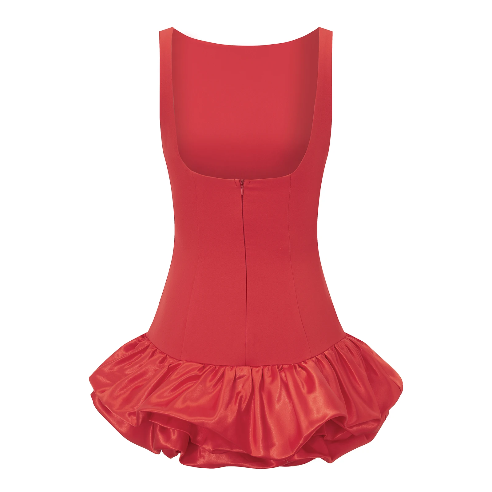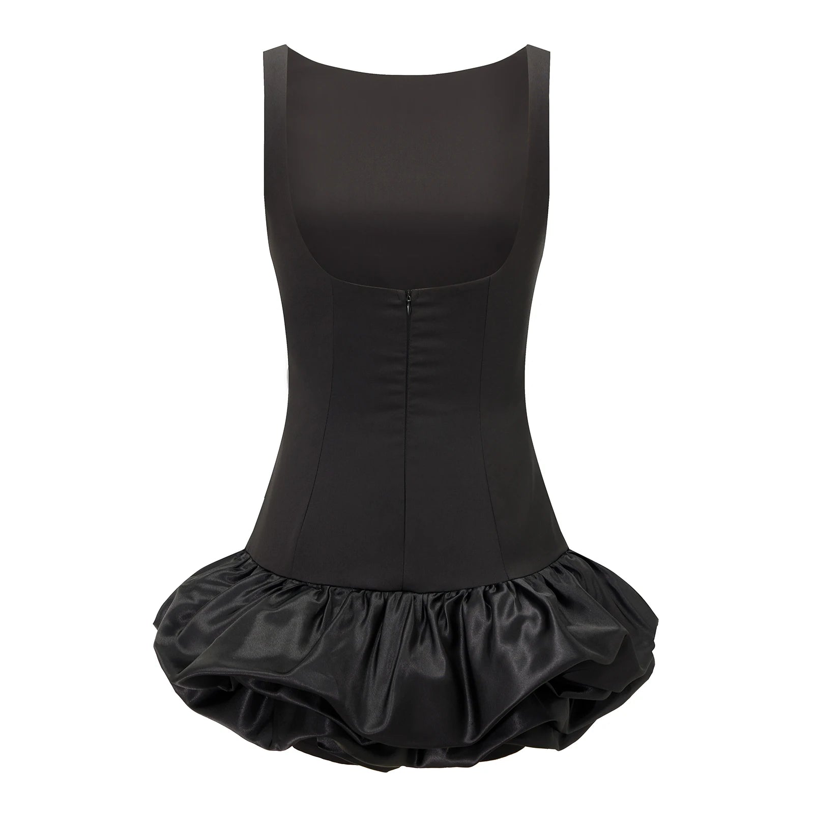 Cyflymder Women Summer Mini Tank Dress Sleeveless Round Neck Solid Color Bud Hem Dress
