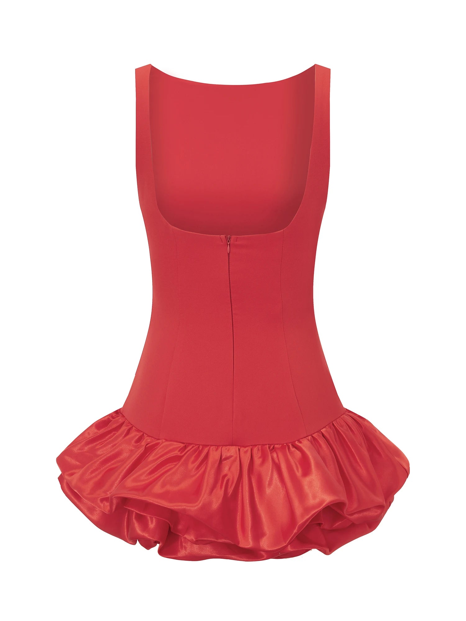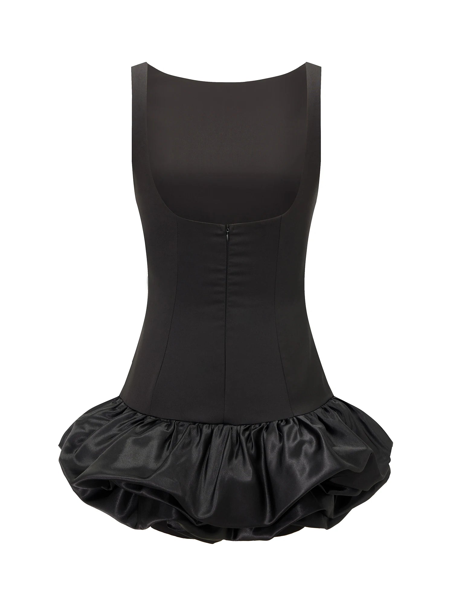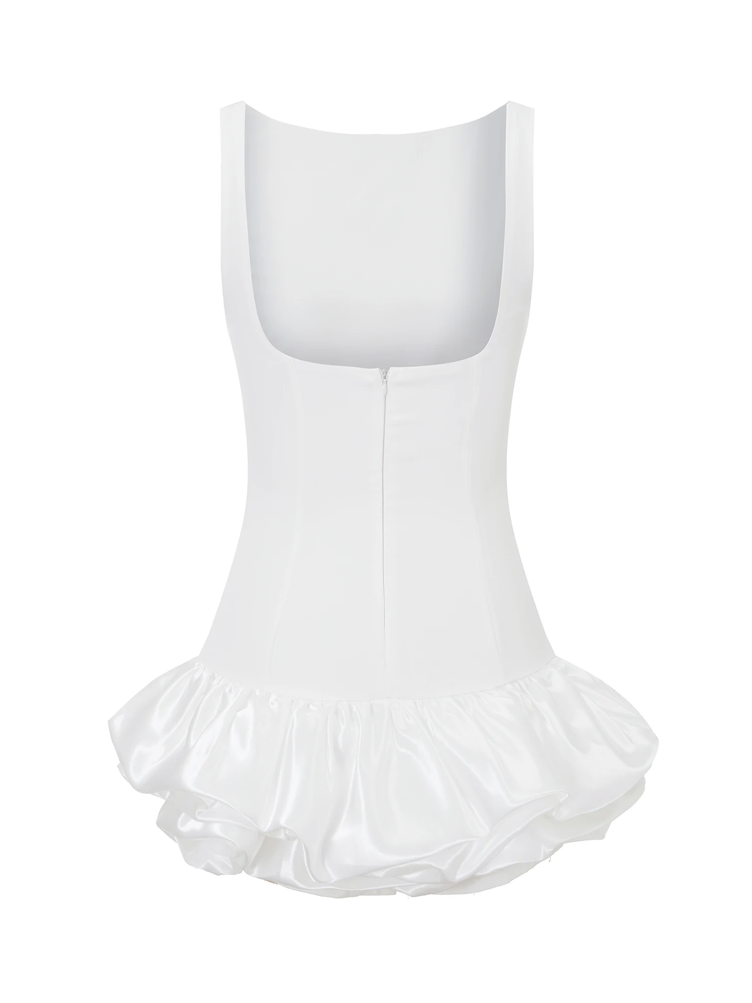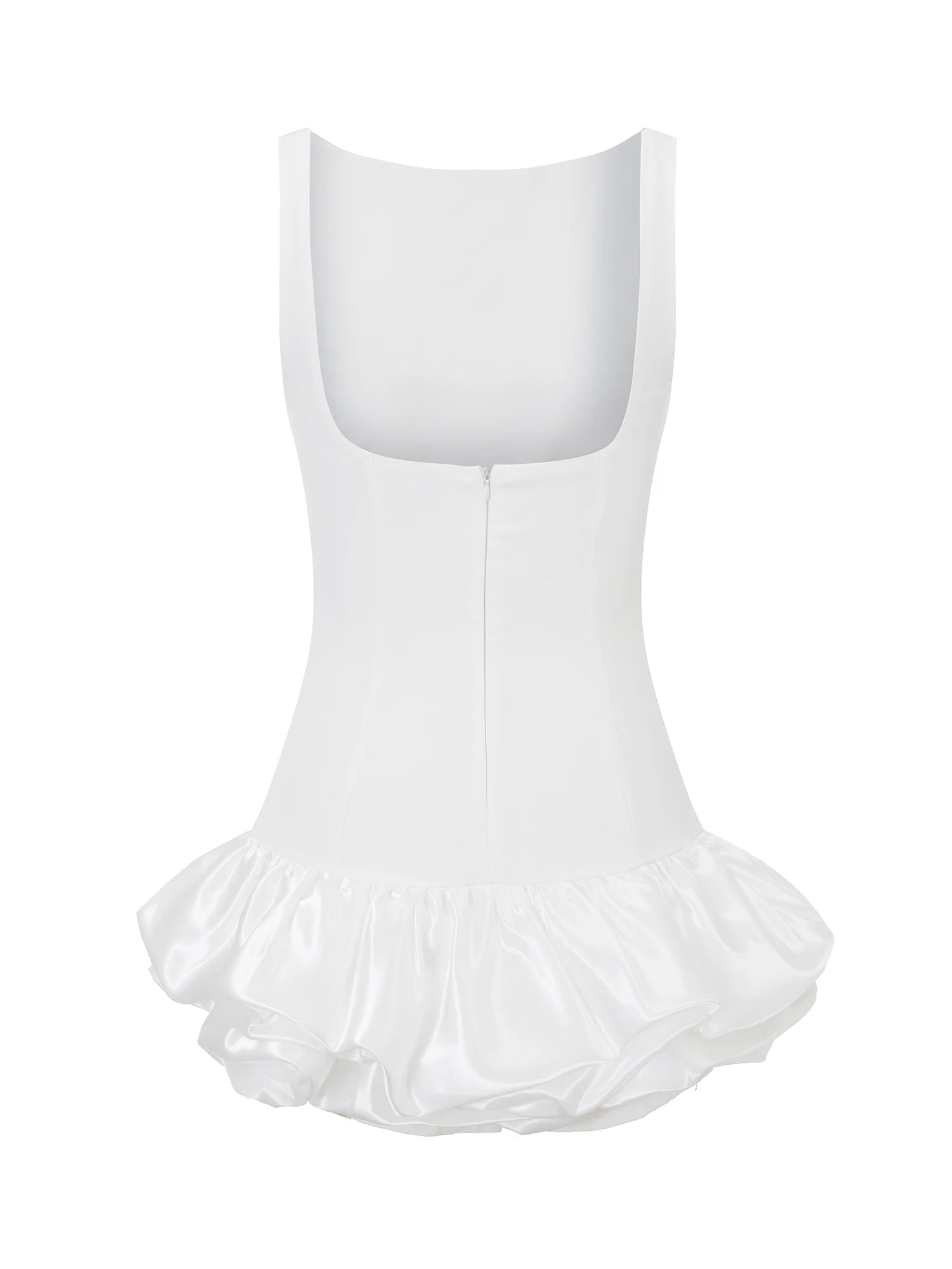Cyflymder Women Summer Mini Tank Dress Sleeveless Round Neck Solid Color Bud Hem Dress