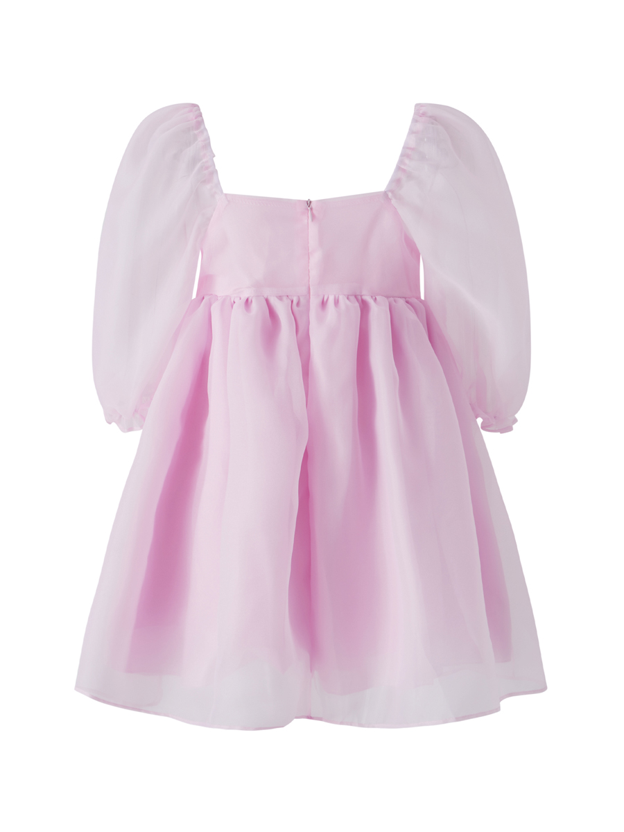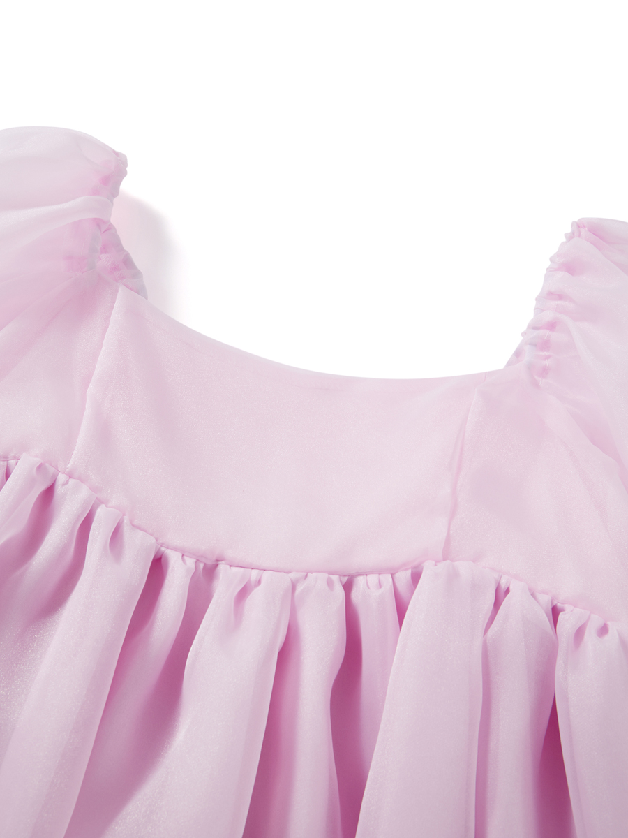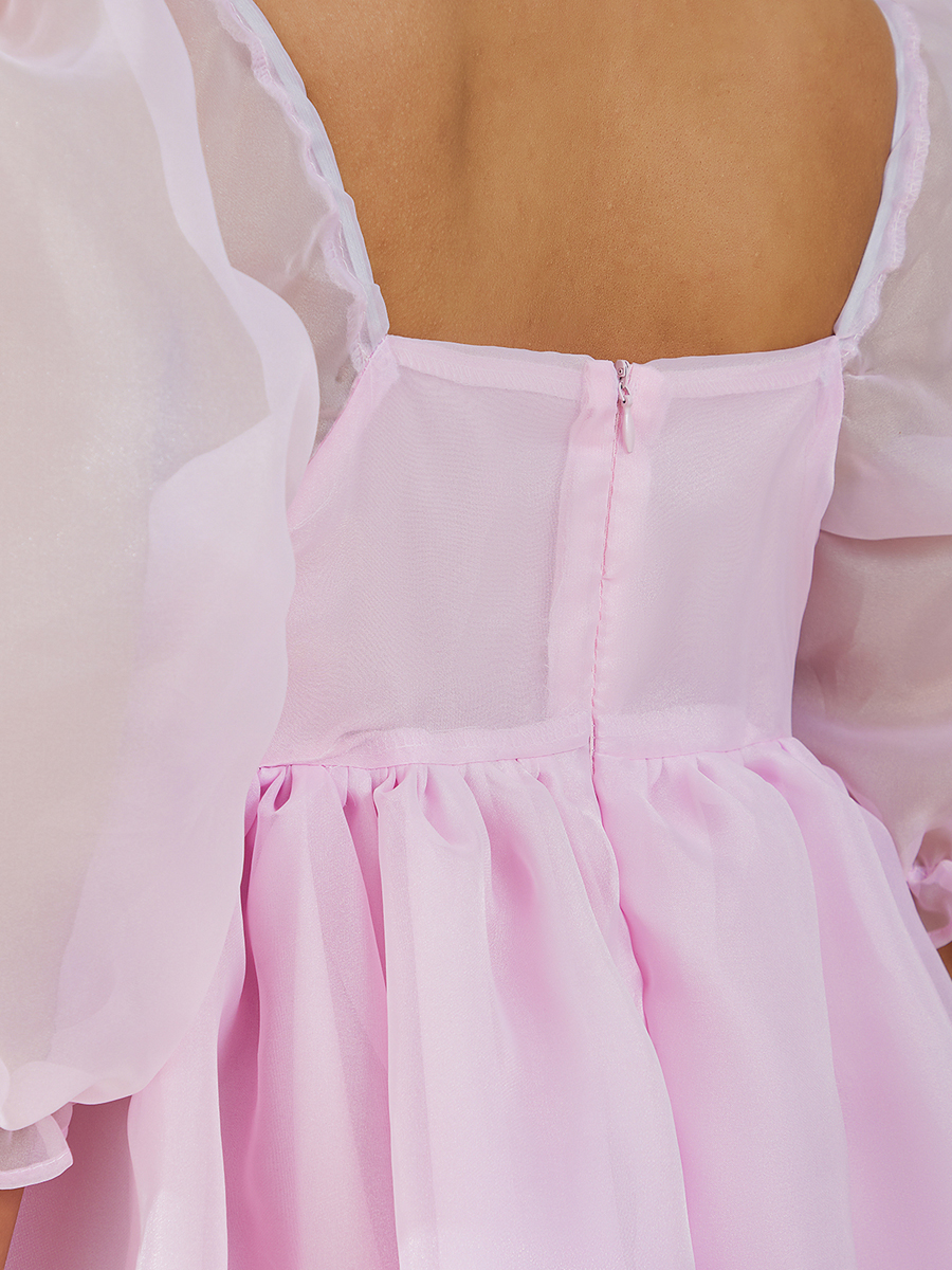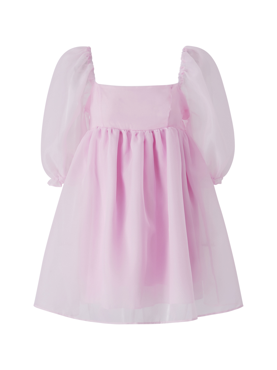 Cyflymder Women Summer Party Puffy Dress Solid Color Square Neck Bubble Sleeve Short Dress for Ladies Pink/Purple/Yellow