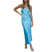 Cyflymder Women Summer Solid Color Party Strapless Dress Sleeveless Backless Elastic Strap Silk Surface Elegant Long Dress