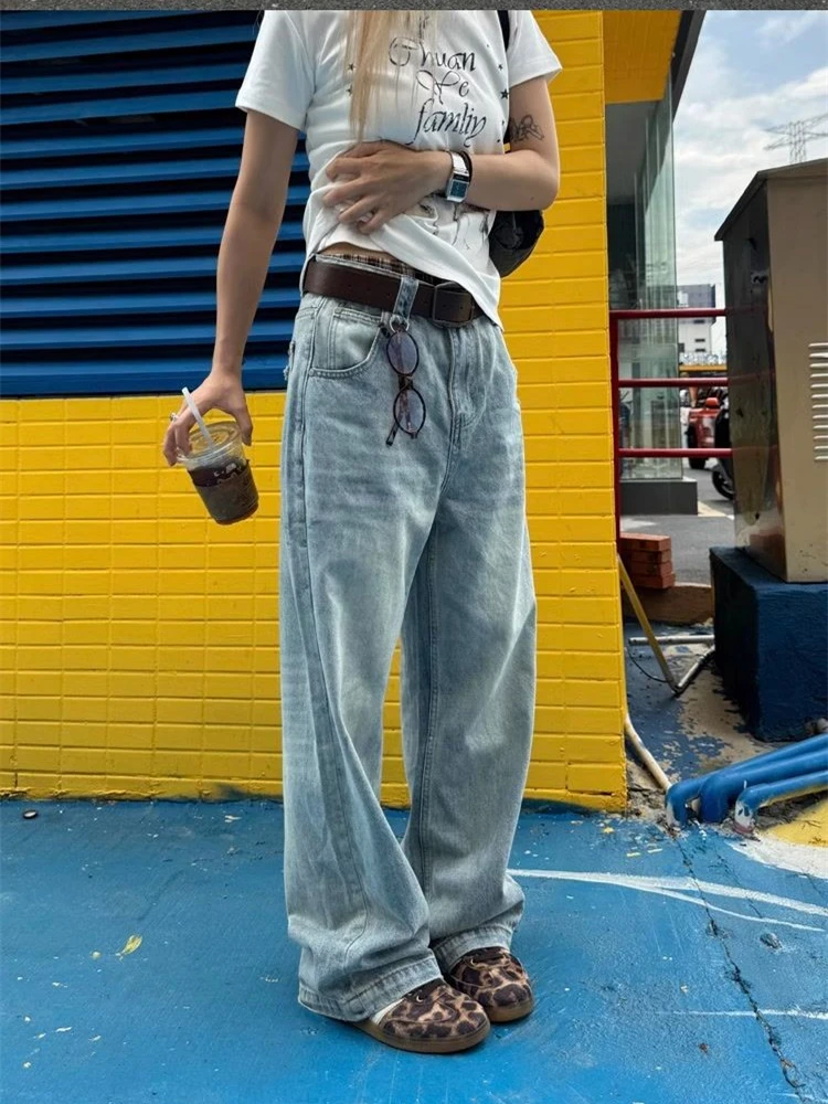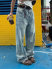 Cyflymder Women Vintage Light Blue Denim Jeans Retro Wash High Waist Wide Leg Trousers Summer Cool Girl Casual Pants Neutral Tone