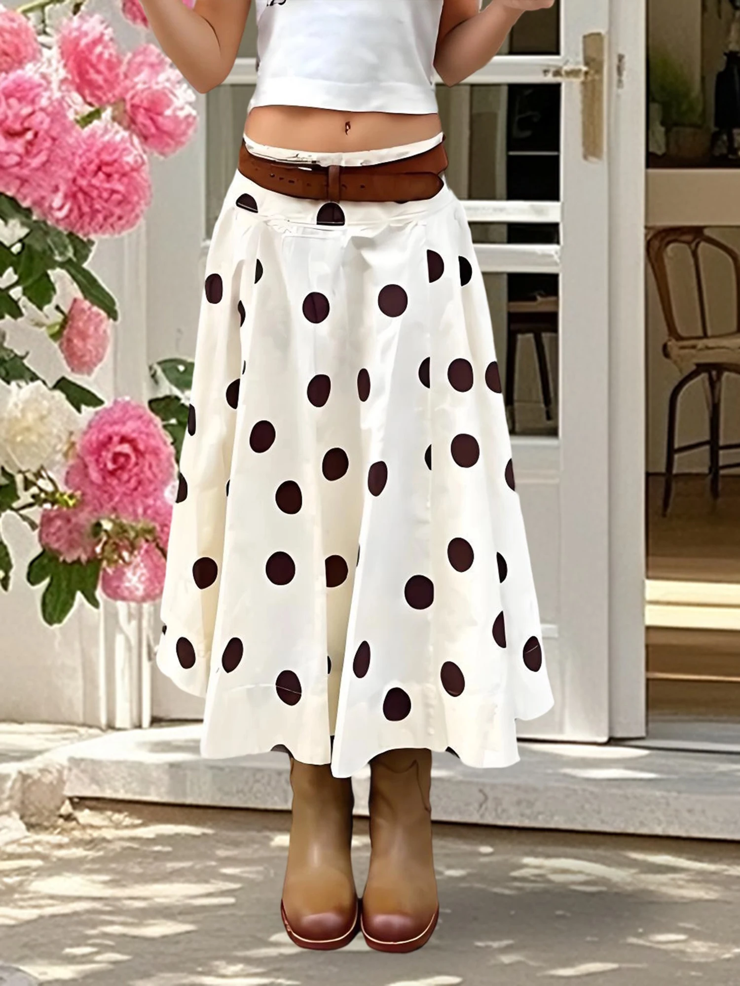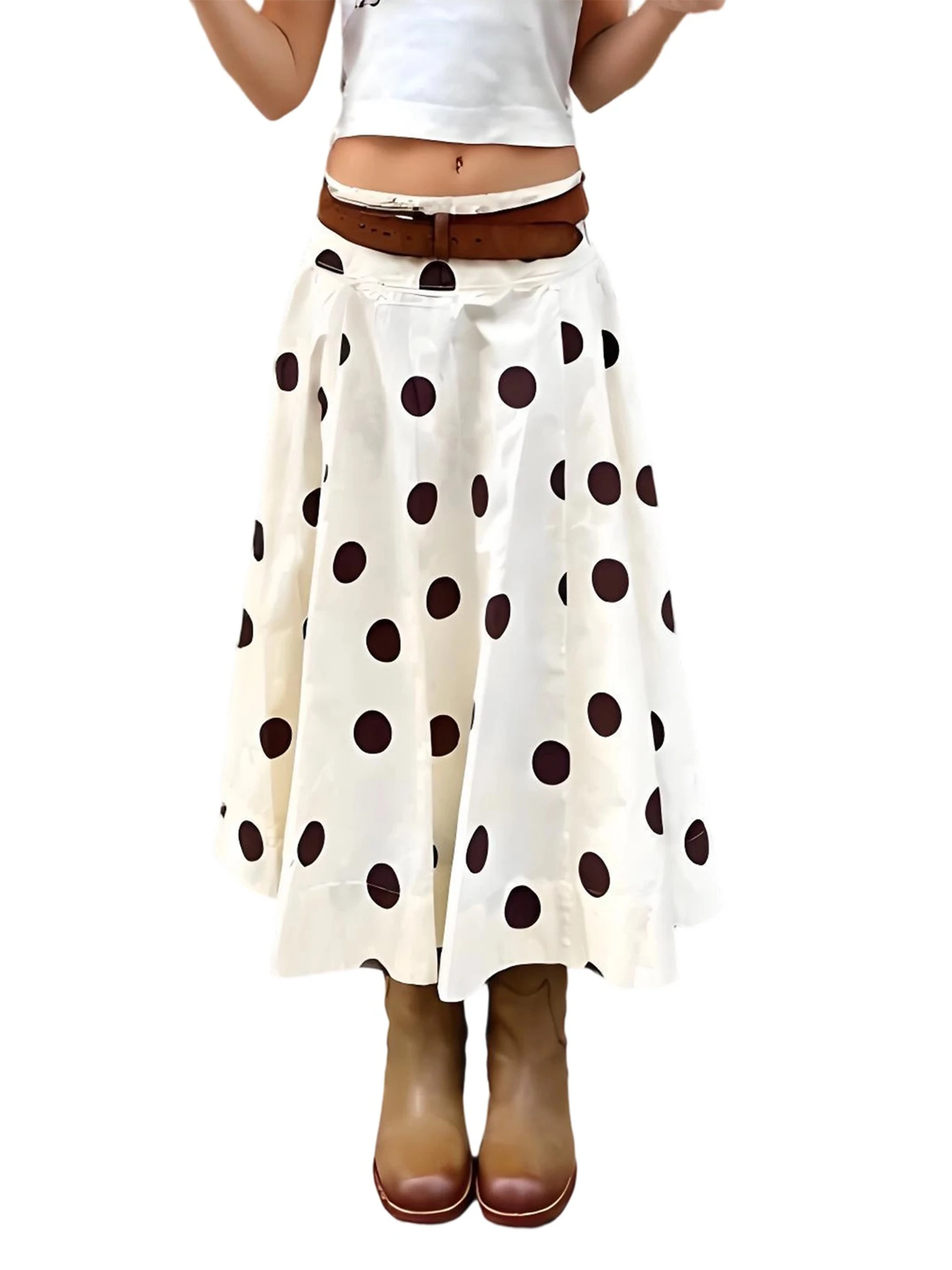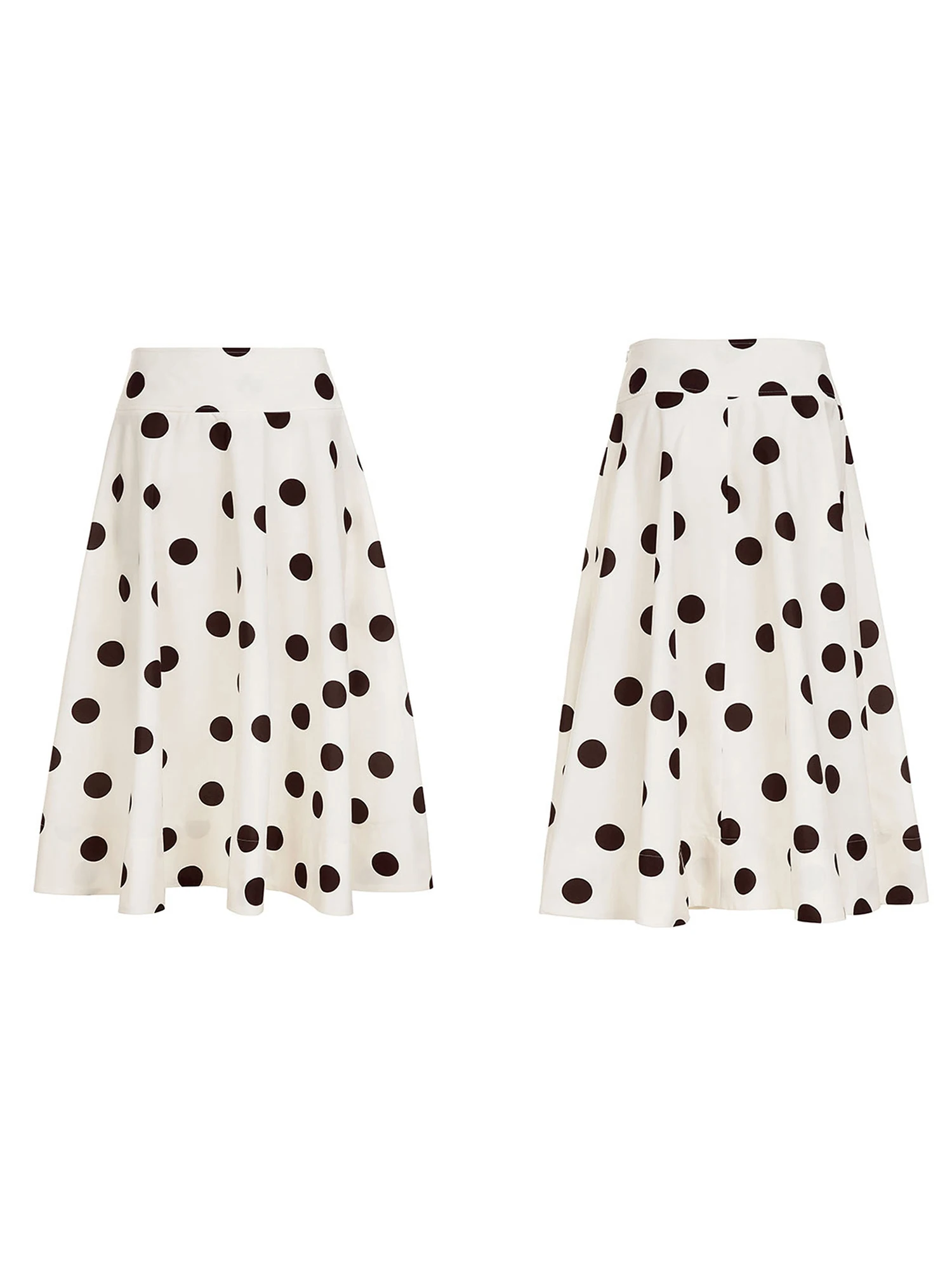 Cyflymder Women White A-Line Skirt Dots Print High Waist Midi Skirt Elegant Swing Skirts for Daily Leisure and Work