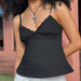 Cyflymder Women Y2k Babydoll Tank Top Cute Lace Trim Spaghetti Strap Backless Cami V Neck Flared Hem Flowy Peplum Crop Tops