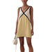 Cyflymder Women Y2k V Neck Short Tank Dress Patchwork Sleeveless Babydoll Mini Dresses Elegant Boho Vacation Sundress