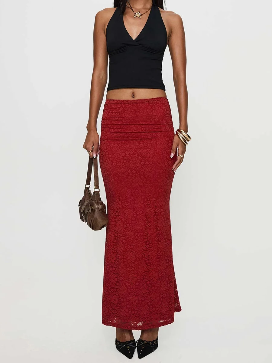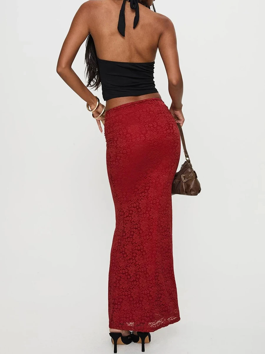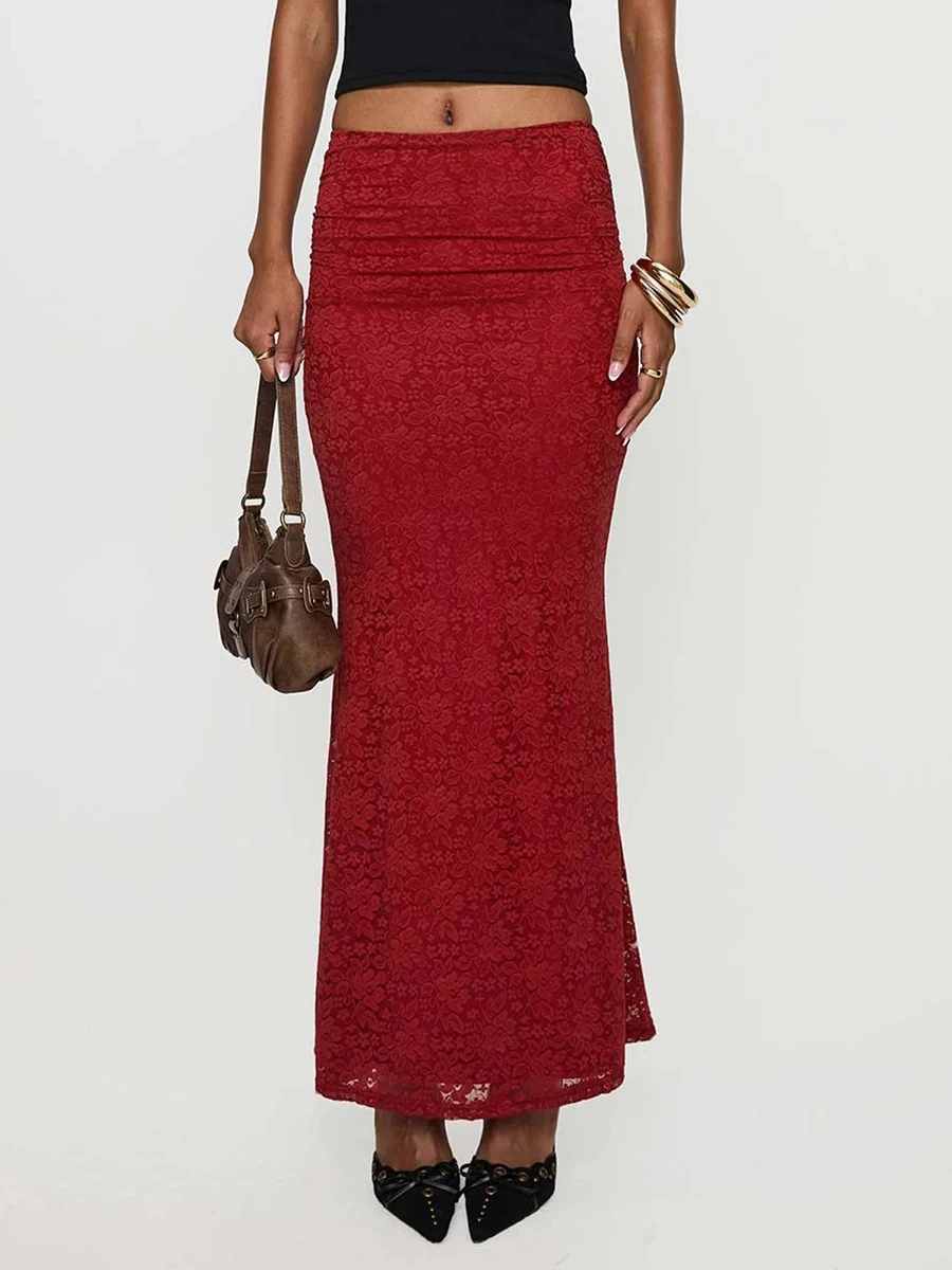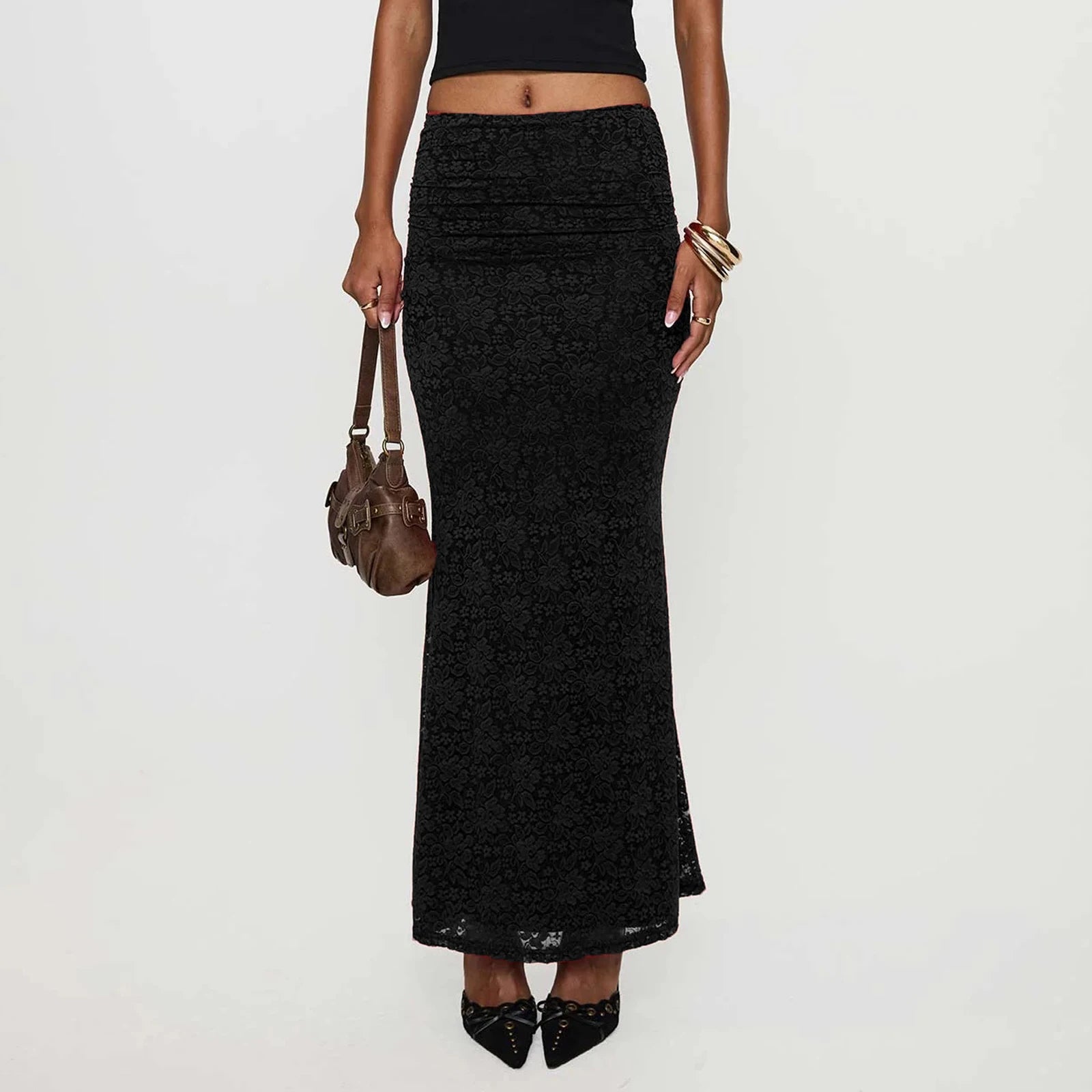 Cyflymder Women Y2K Vintage Summer Bodycon Skirt Casual Floral Lace Elastic Skirt for Beach Vacation Club Streetwear