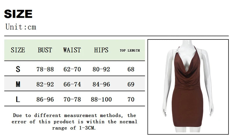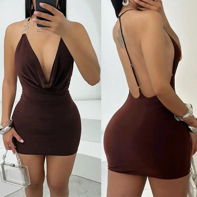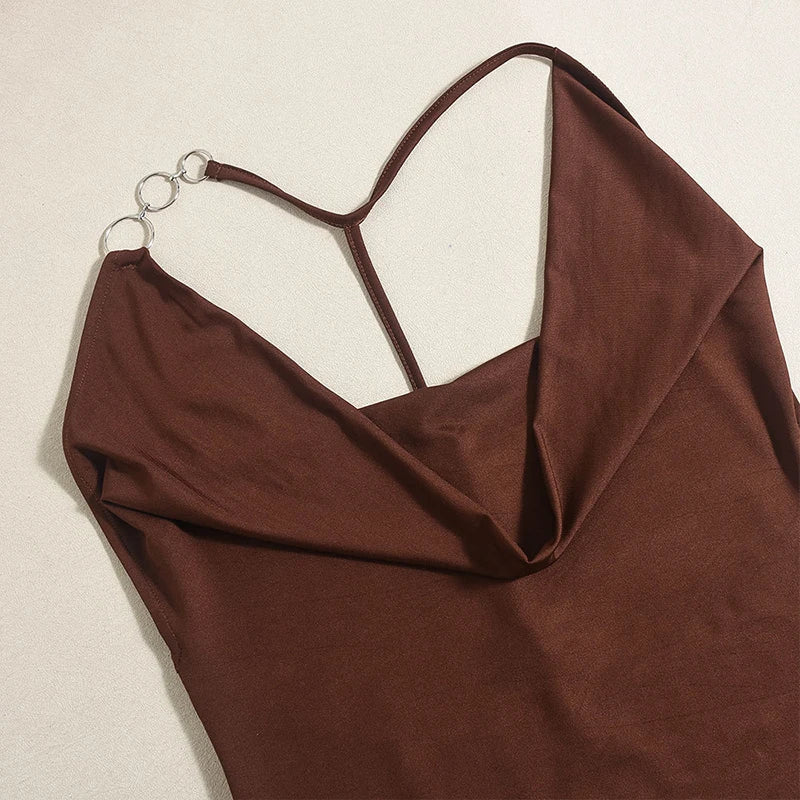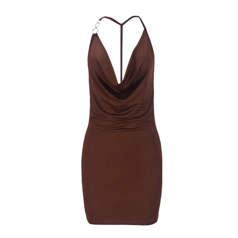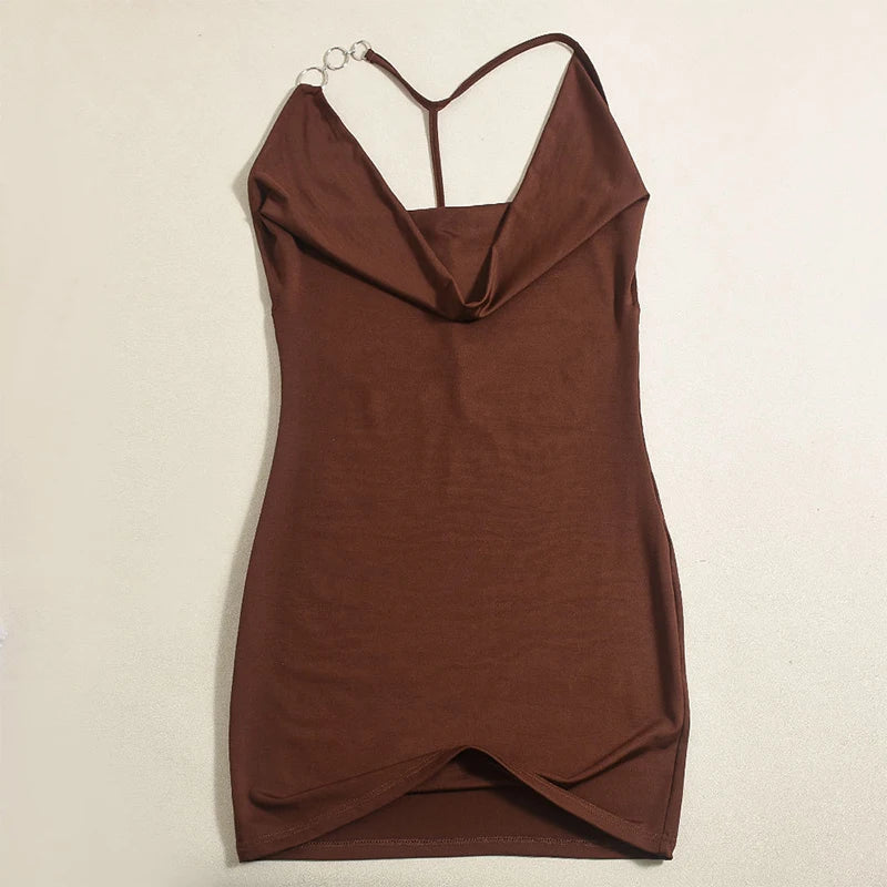Cyflymder Women's Asymmetric Metal Ring Decorative Halter Swinging Collar Draped Backless Sleeveless Skinny Mini Dress Nightclub Wear