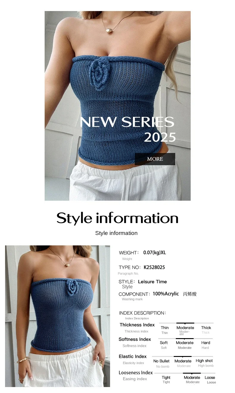 Cyflymder Women's Blue Sleeveless Tube Top Y2K Slim Fit Comfortable Backless Strapless Knit Vest Summer Women's Clothing