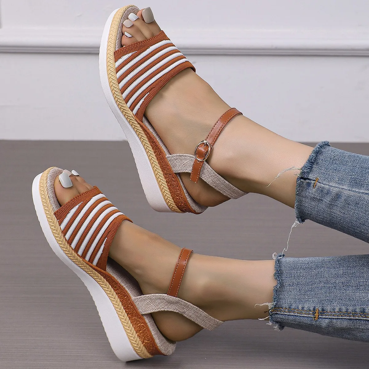Cyflymder Women's Braided Casual Sandals Buckle Strap Platform Wedge Sandles for Women 2025 Summer Light Non Slip Walking Sandalias