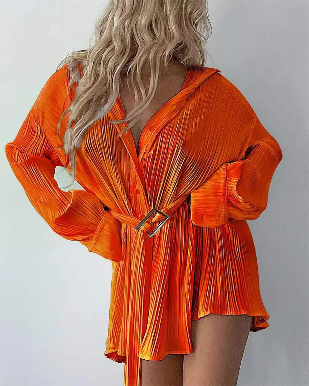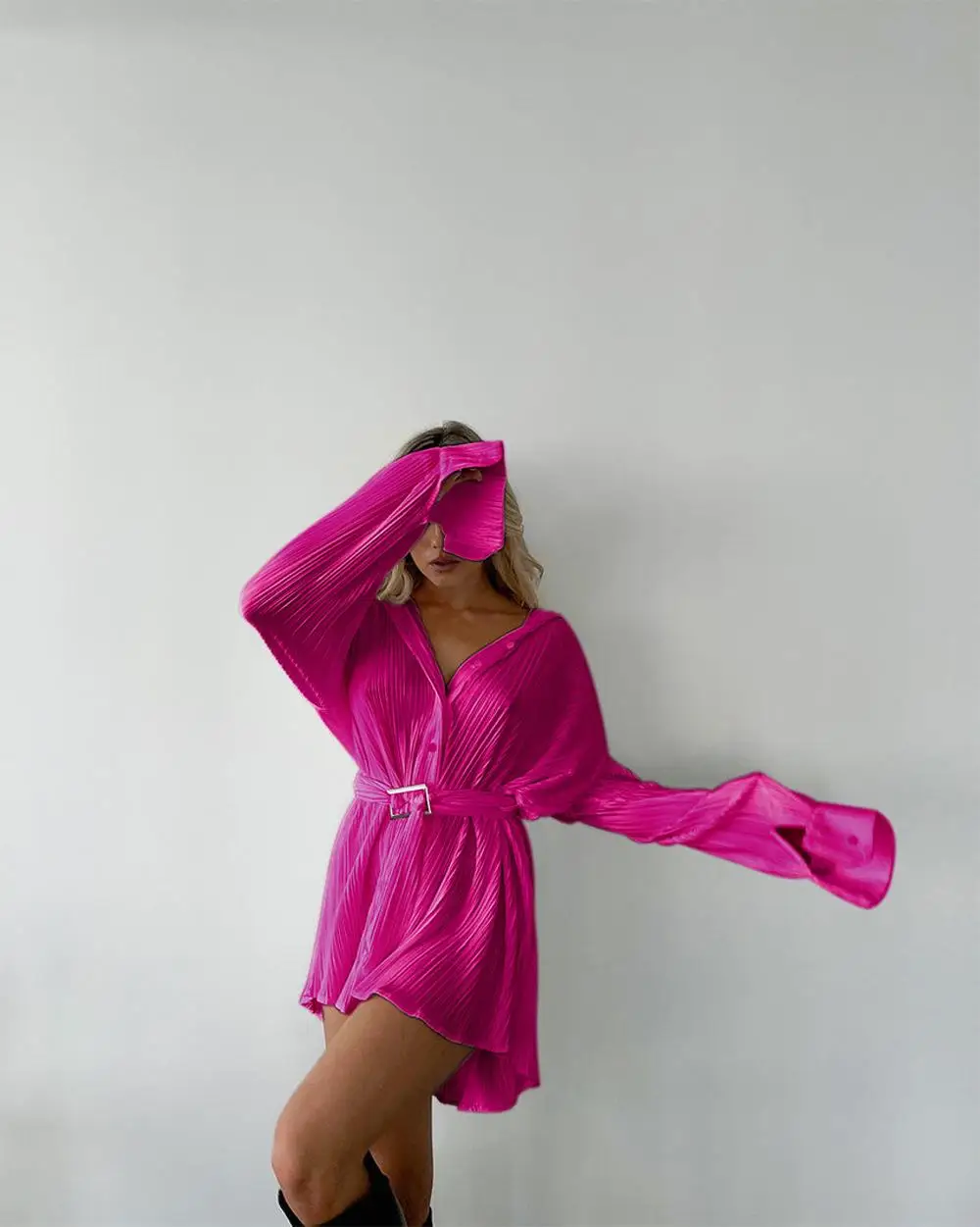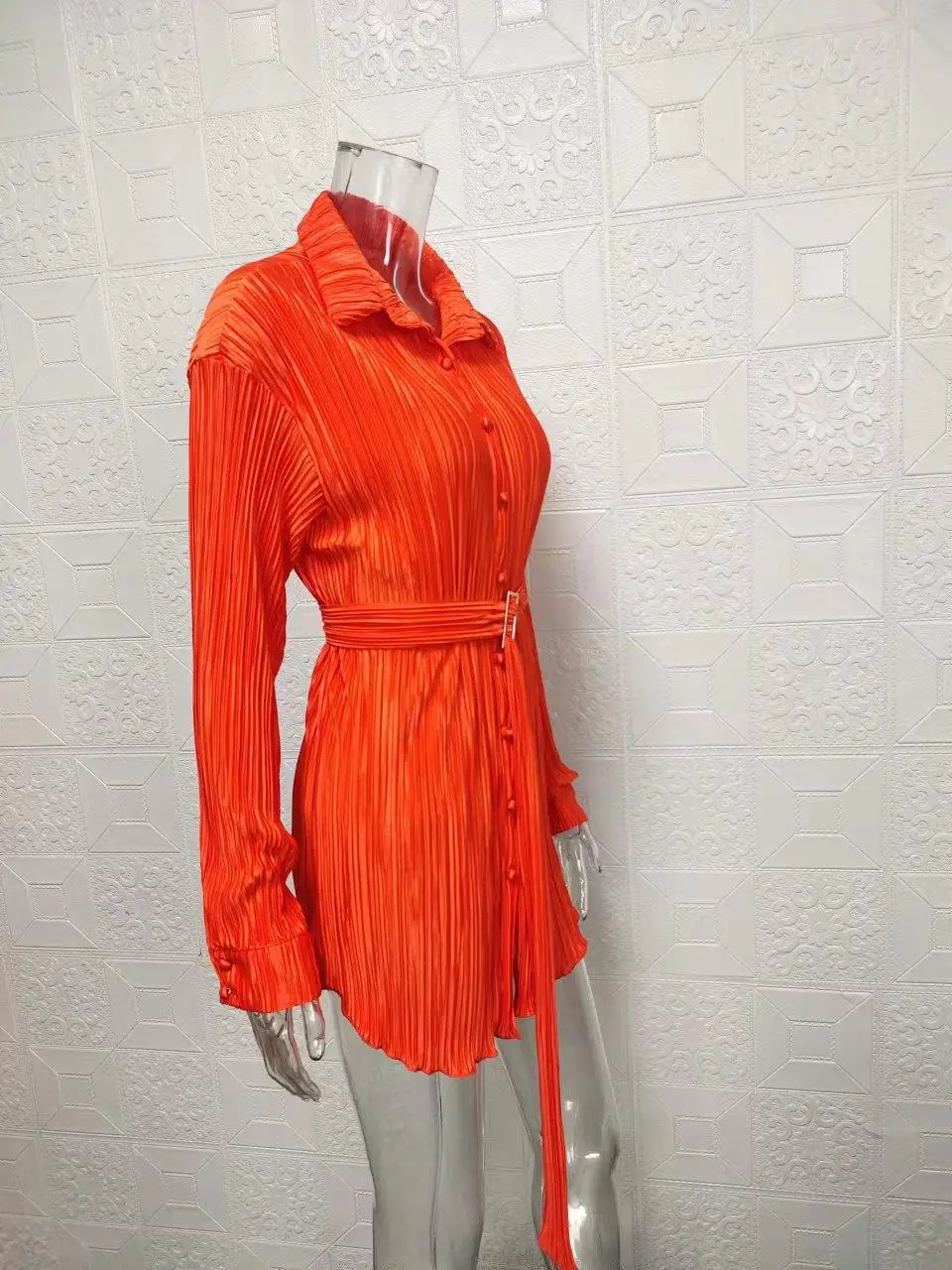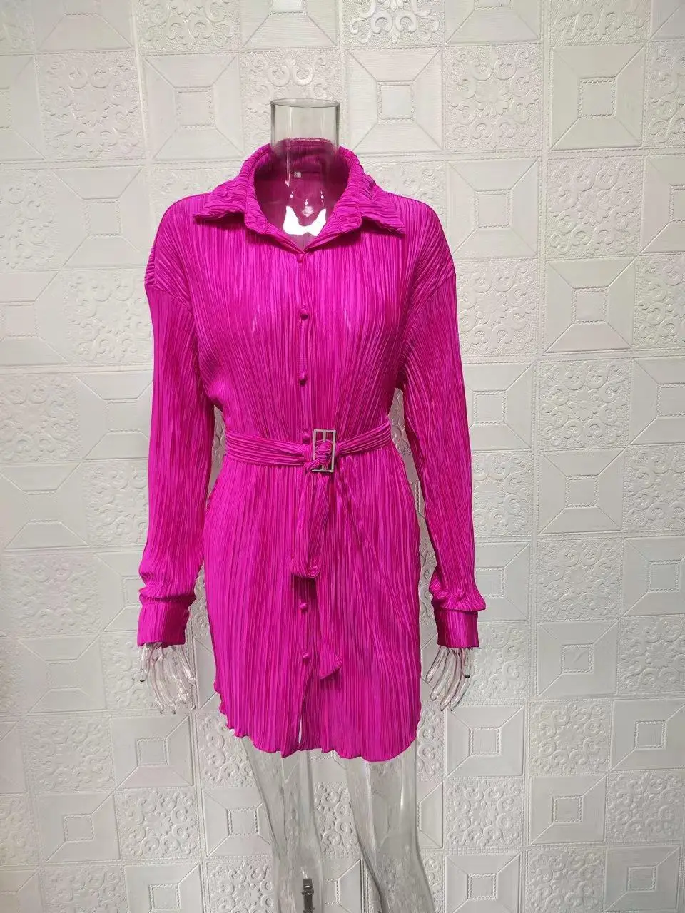 Cyflymder Women's Casual Faion Pleated Long irt Dr with Belt mid Waist ort Skirt Length Pure Color Winter Season Long Sve