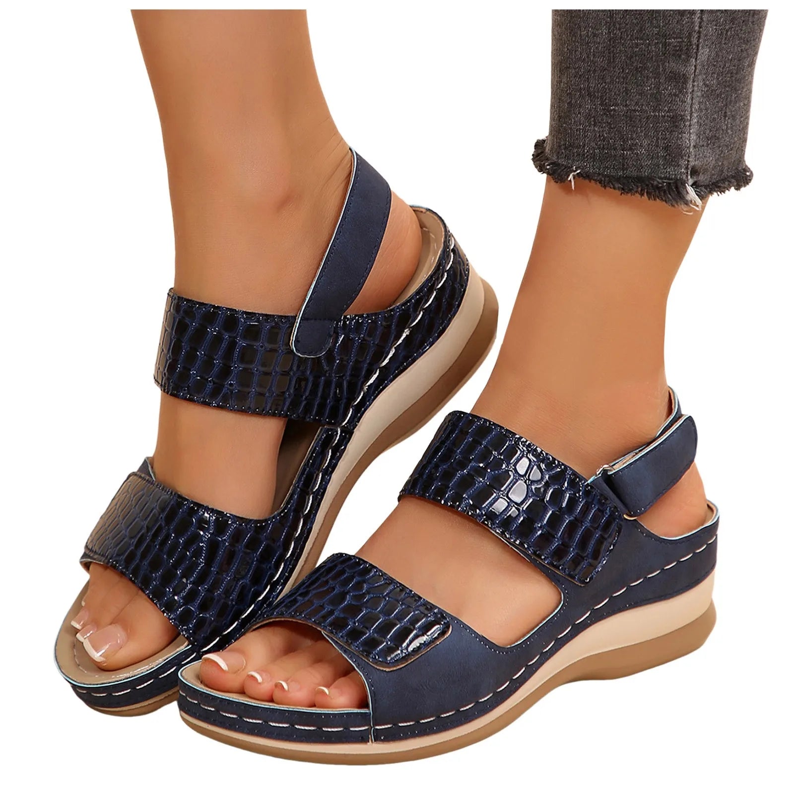 Cyflymder Women's Casual Sandals Large Size Wedge Platform Heeled Buckle Shoes Patent Leather Thick Sole Walking Flat Female Footwear