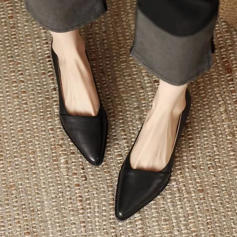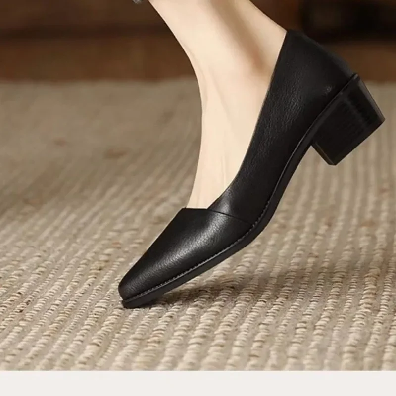 Cyflymder Women's Coarse Heel Shoes Spring New Pointed Head Shallow Mouth Soft Sole Waterproof Non-slip Low-top Shoes