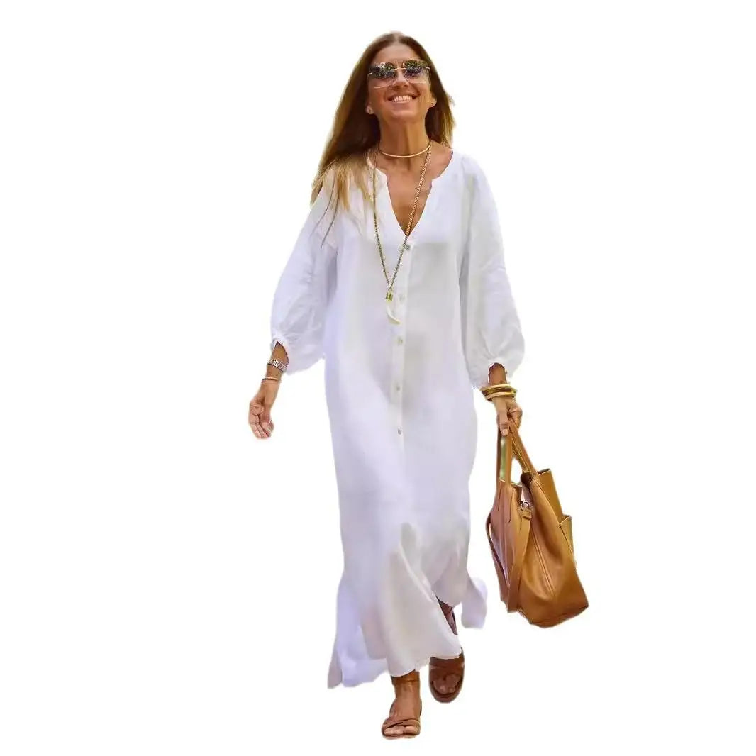 Cyflymder Women's Cotton Linen irt Dr Long Skirt Casual Basic Sle Polyester Fabric Nine Points Sve Irregular Hemline