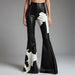 Cyflymder Women's Cow Pattern Leather PU Flare Pant High Waist Slim Faux Leather Trousers High Street Fashion Casual Capris