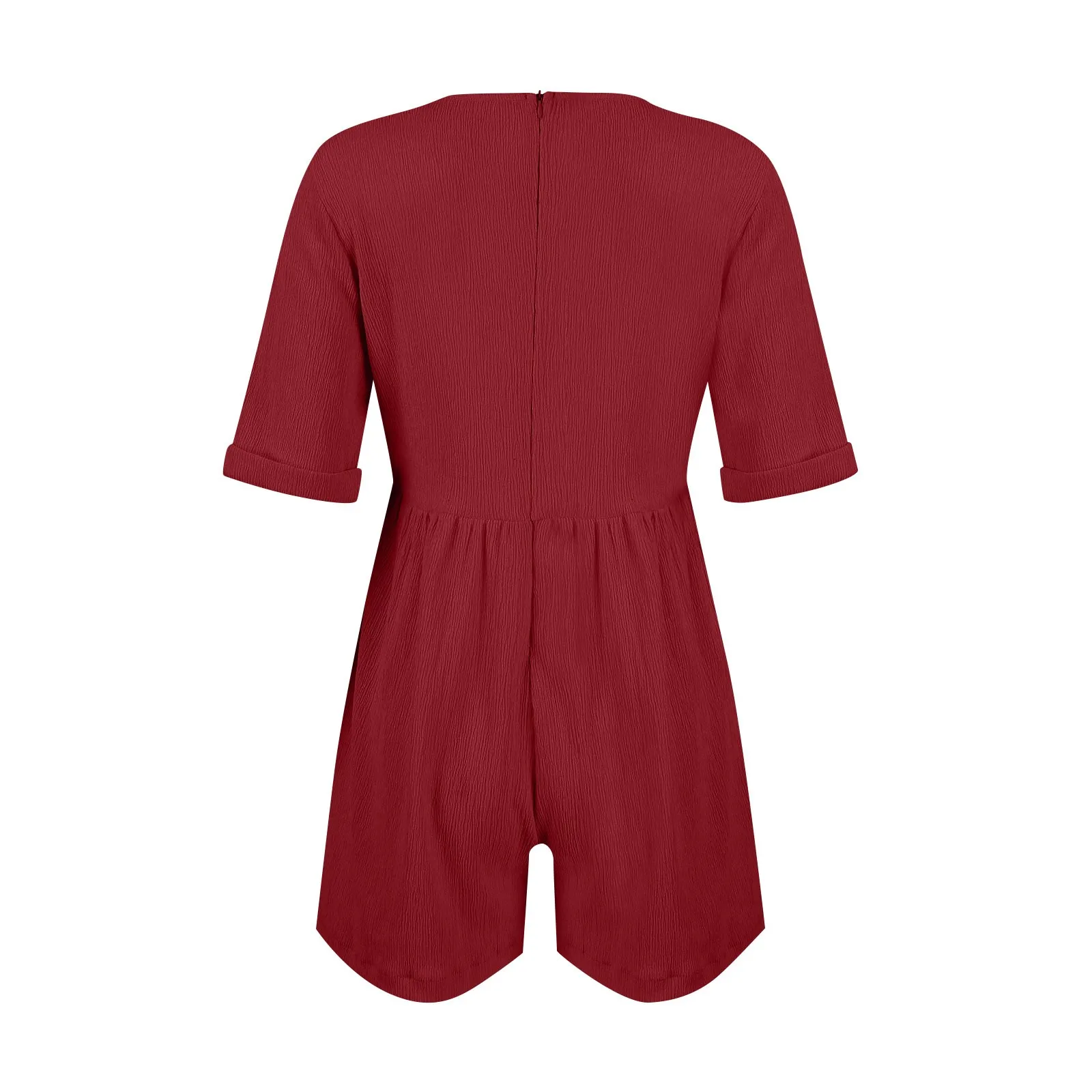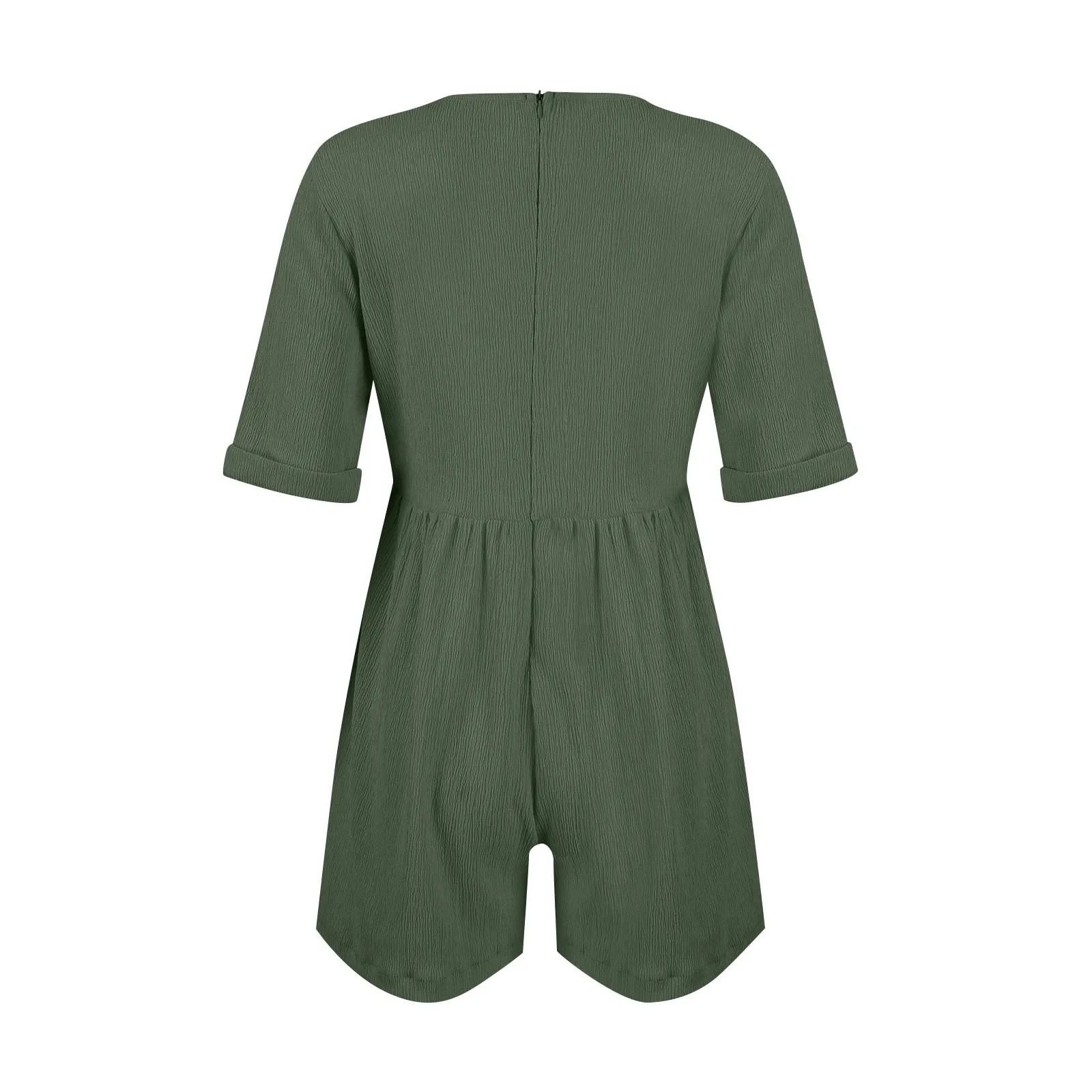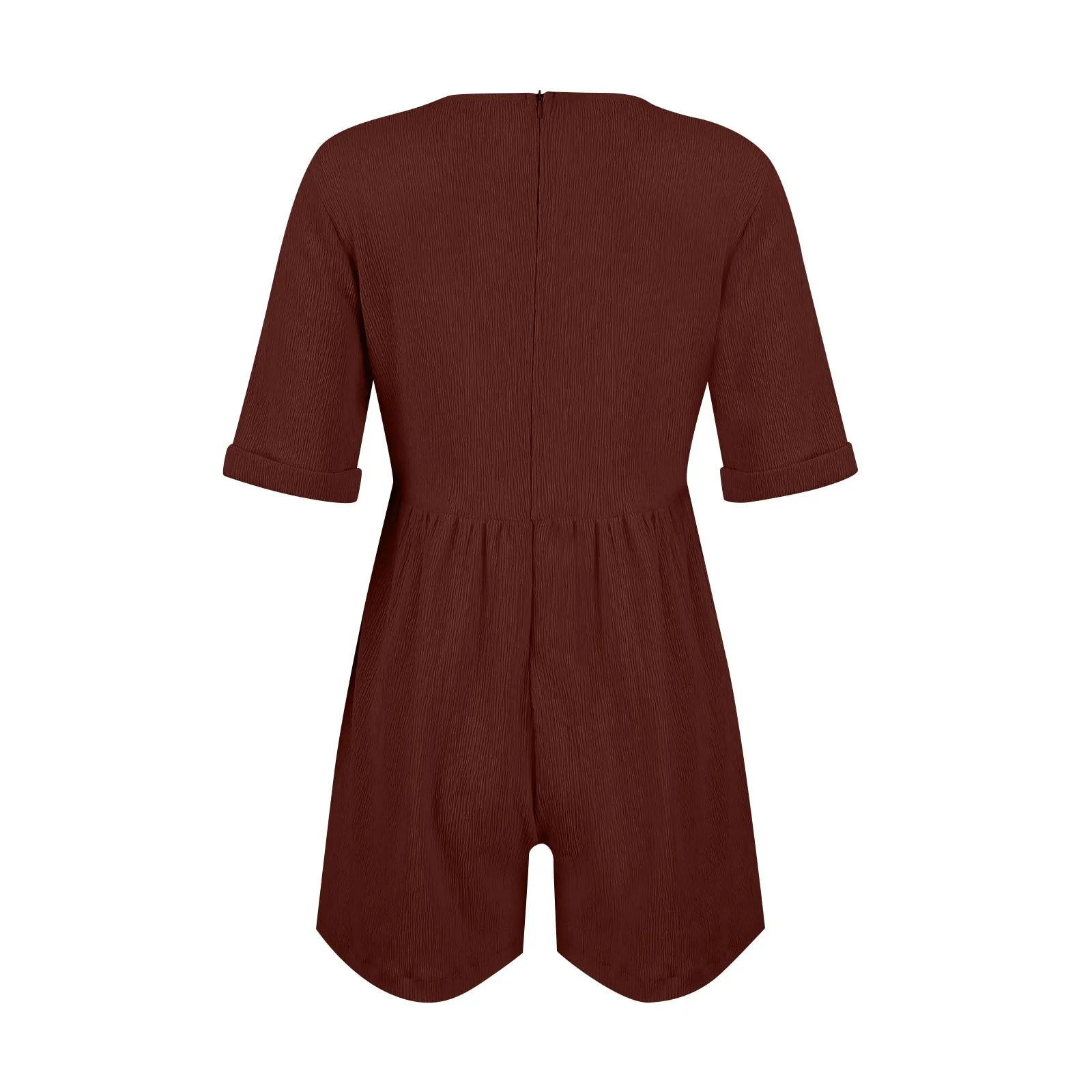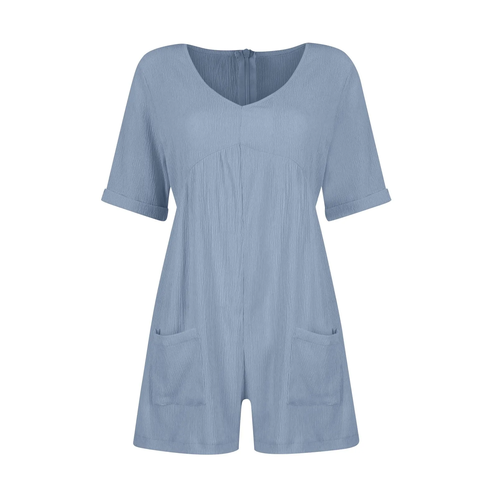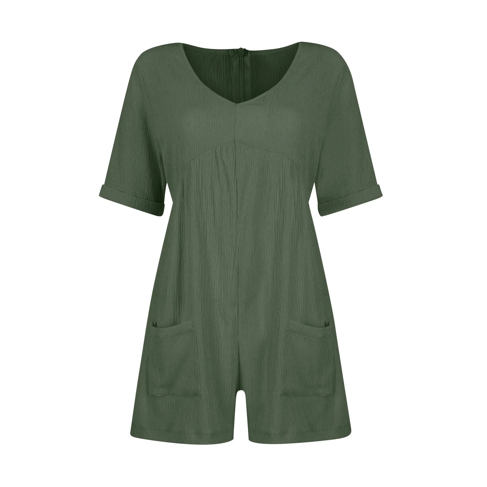 Cyflymder Women's Daily Date Fashion Solid Color Deep V-Neck Short Sleeve With Pockets Comfort Jumpsuit Streetwear Commuting Skinny Romper