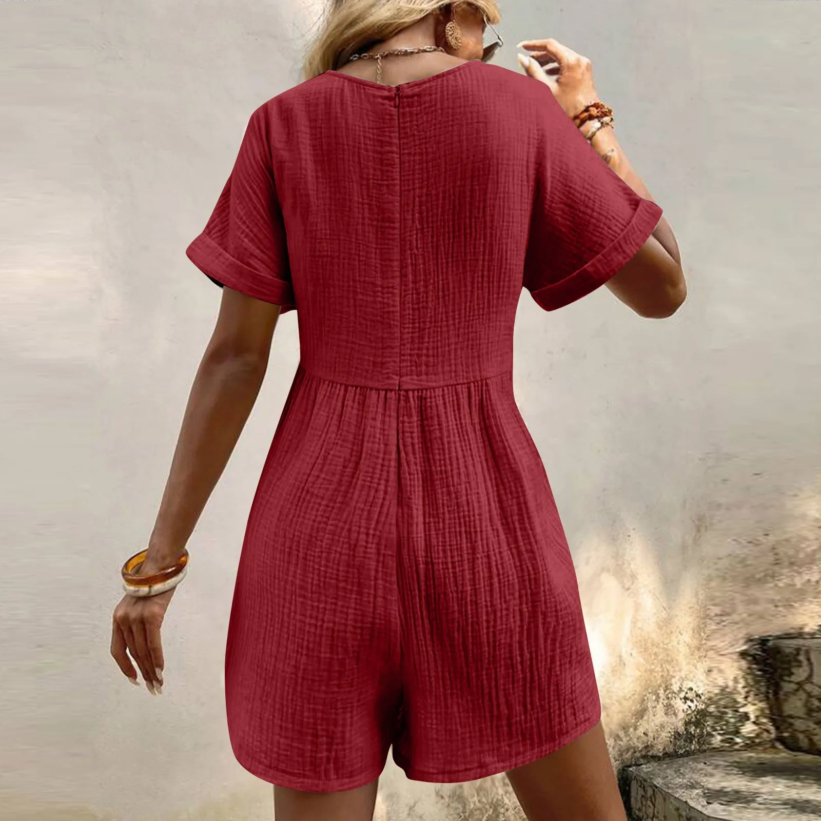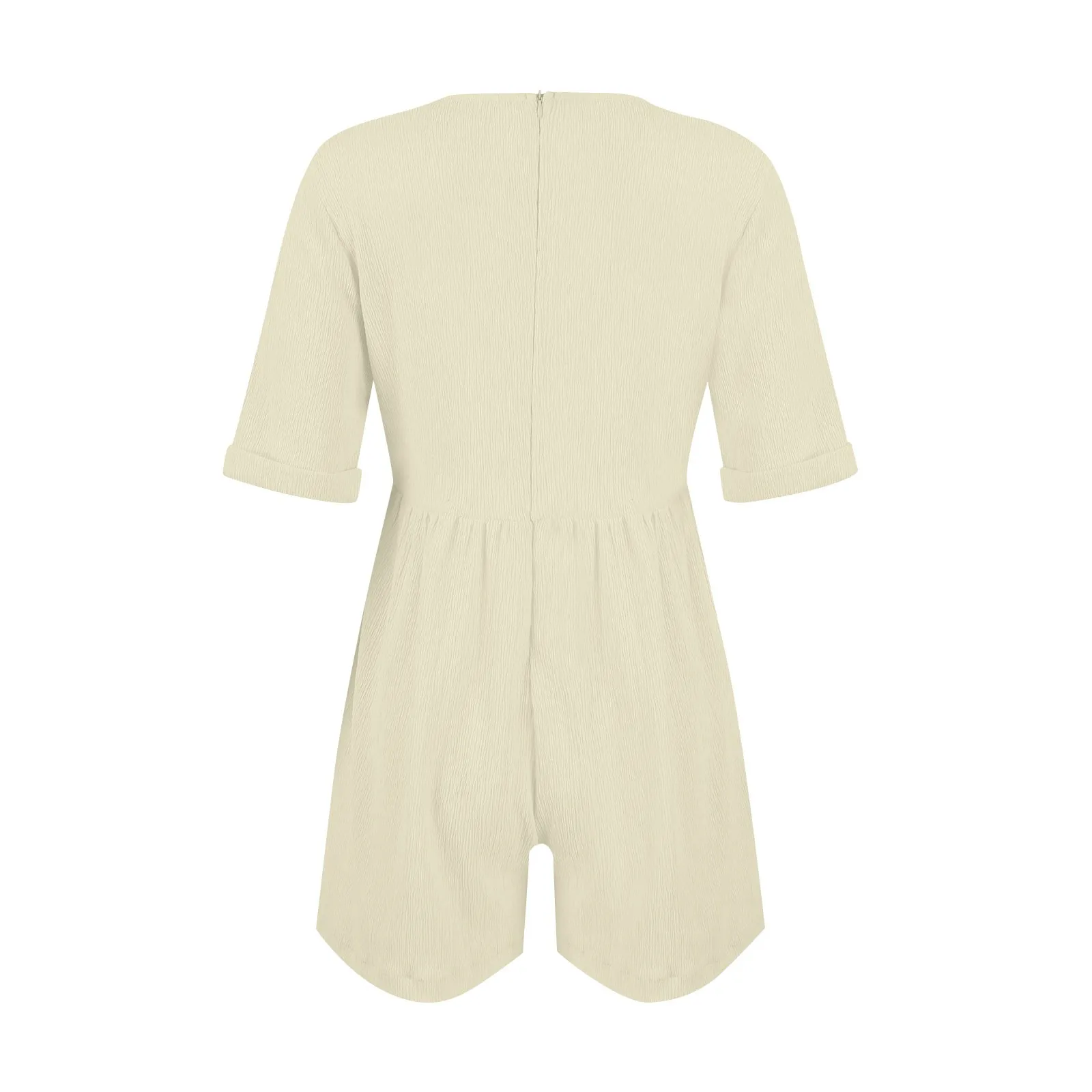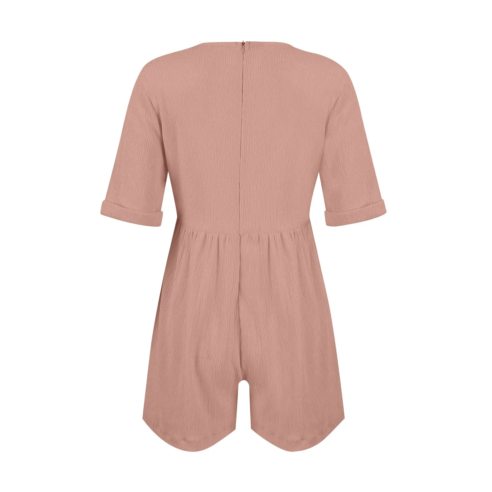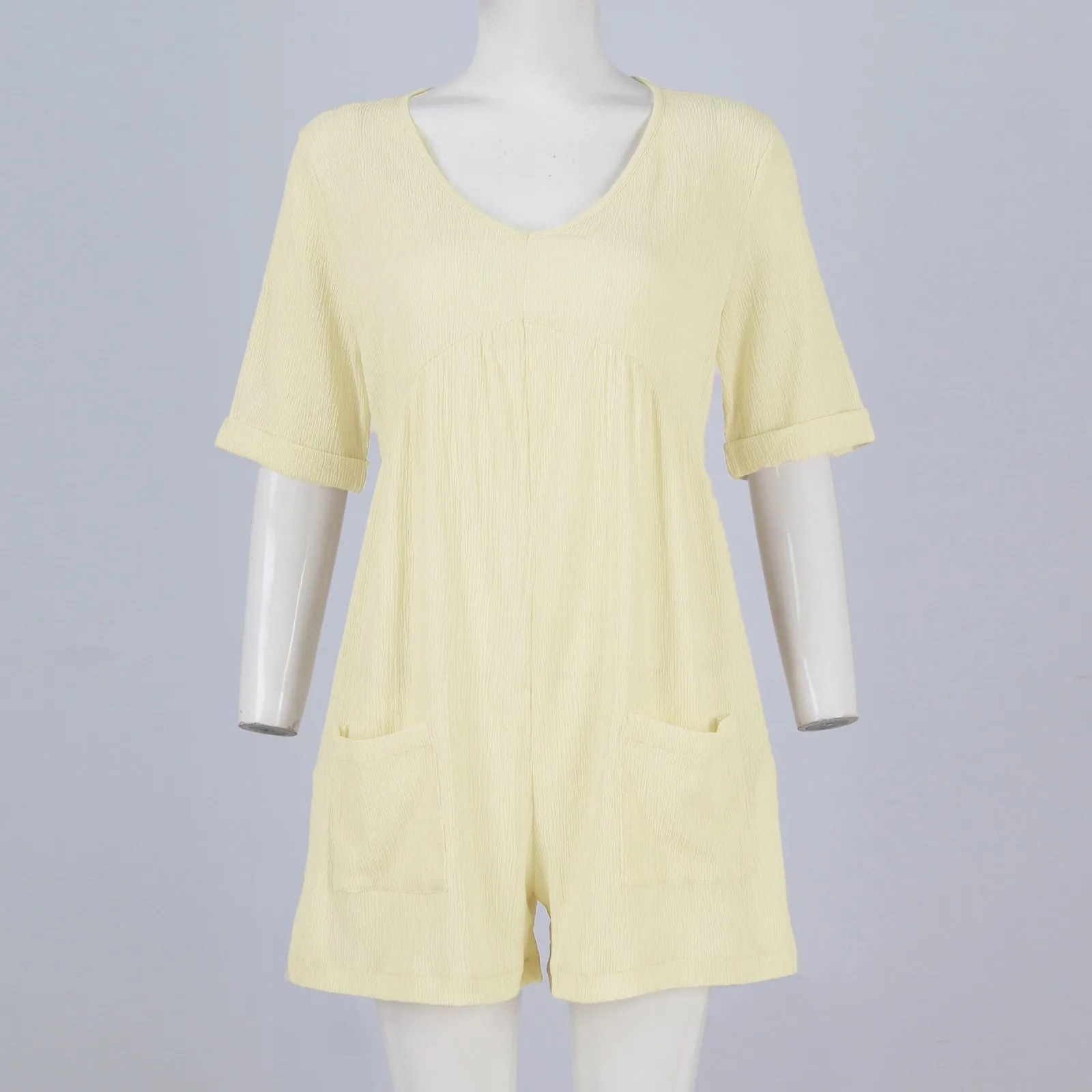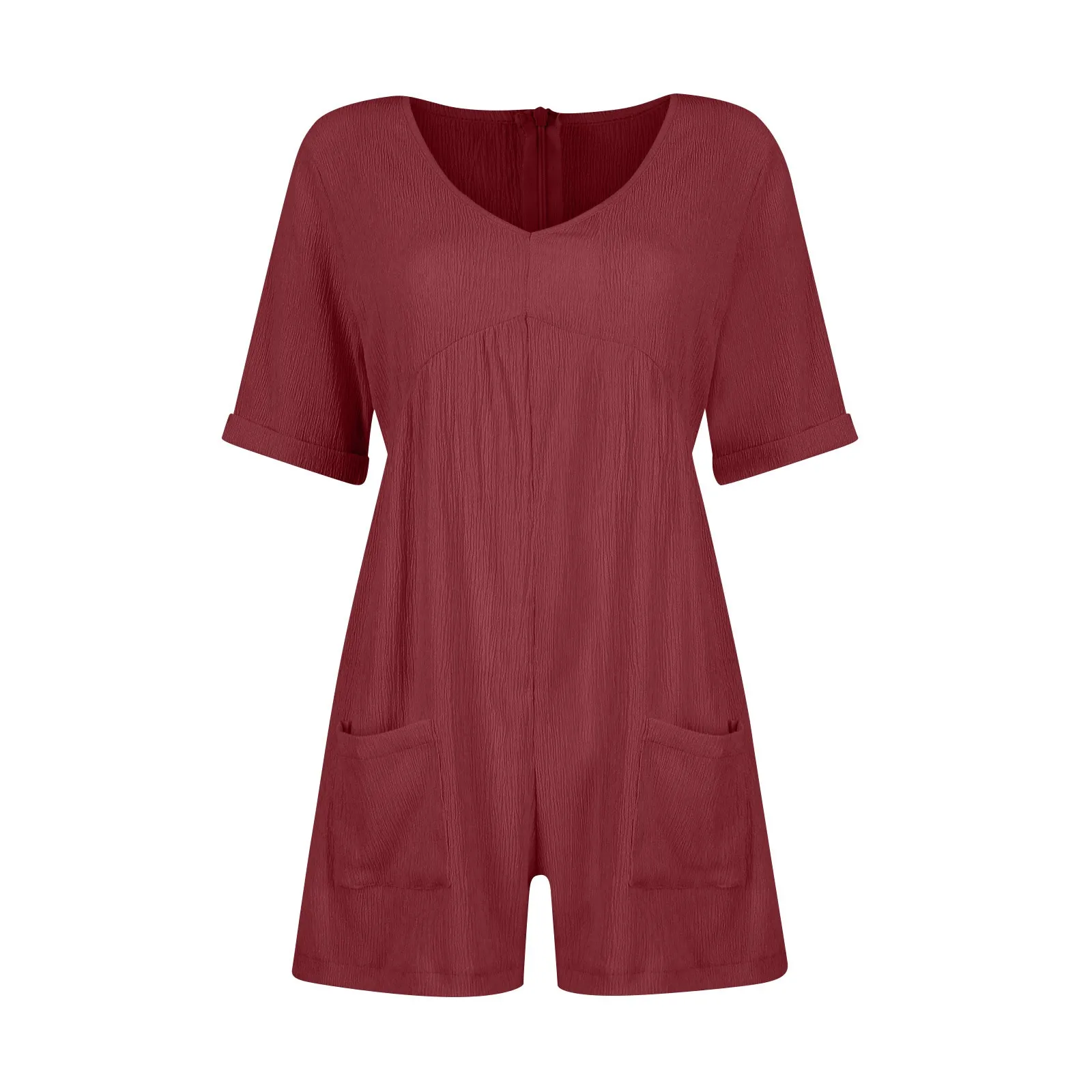 Cyflymder Women's Daily Date Fashion Solid Color Deep V-Neck Short Sleeve With Pockets Comfort Jumpsuit Streetwear Commuting Skinny Romper