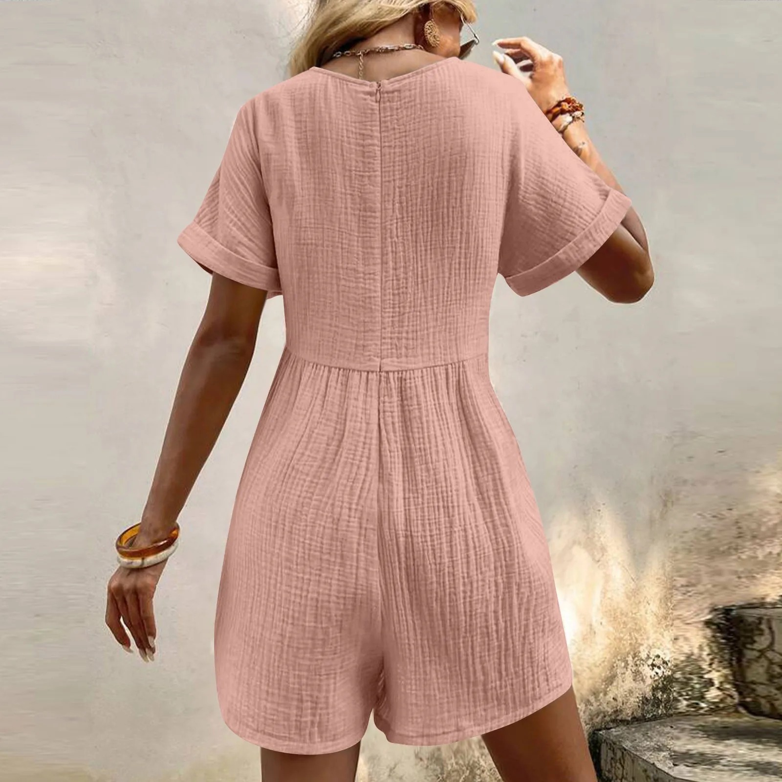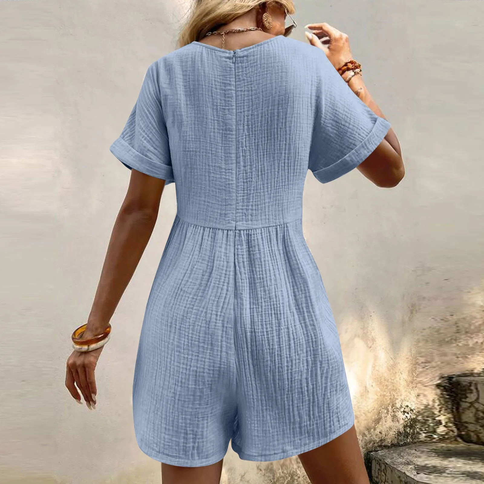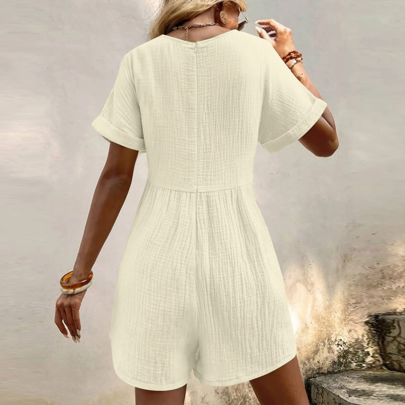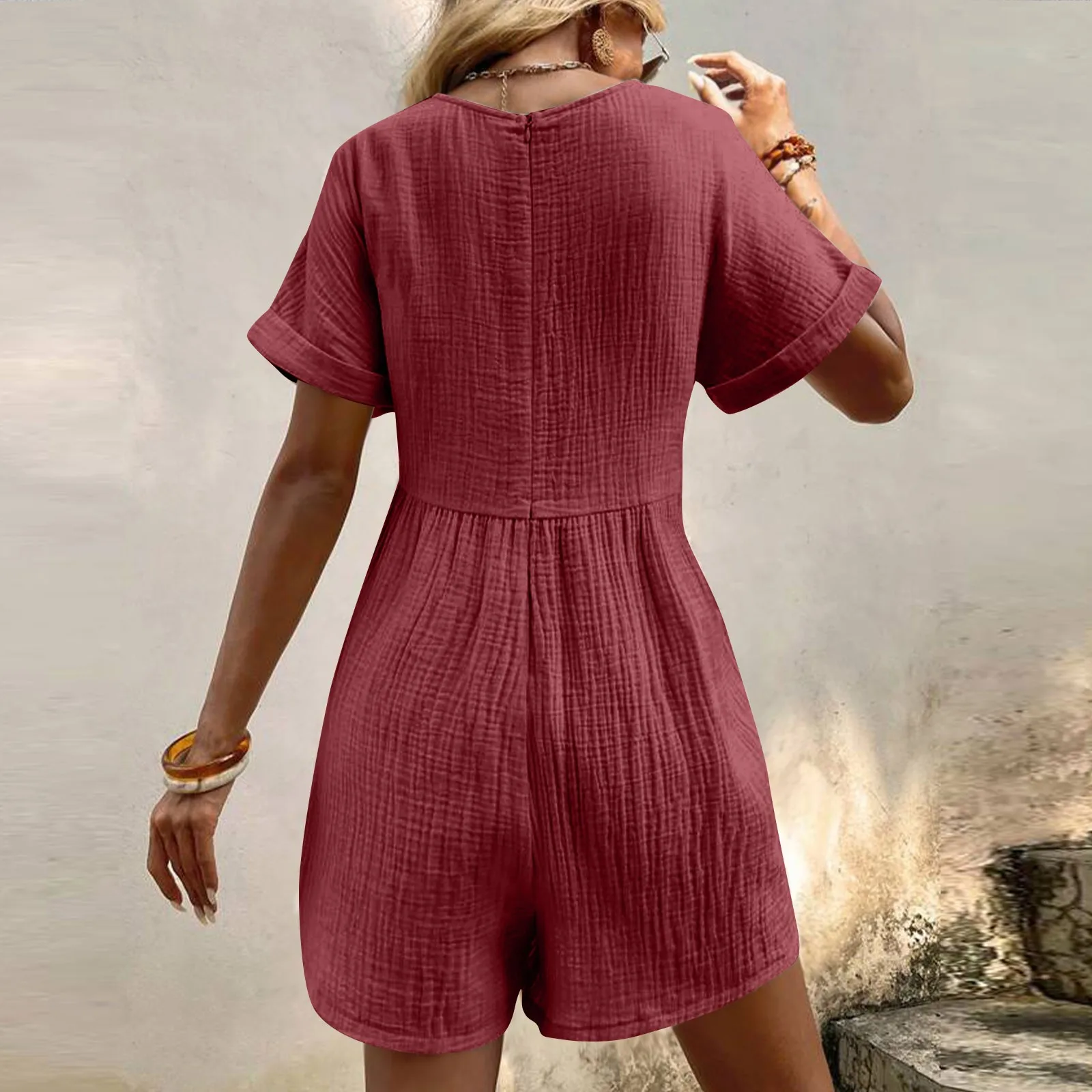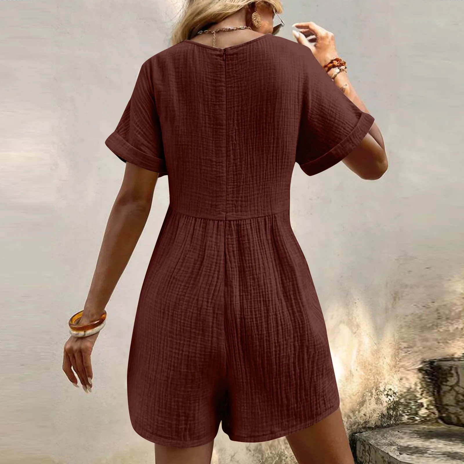 Cyflymder Women's Daily Date Fashion Solid Color Deep V-Neck Short Sleeve With Pockets Comfort Jumpsuit Streetwear Commuting Skinny Romper