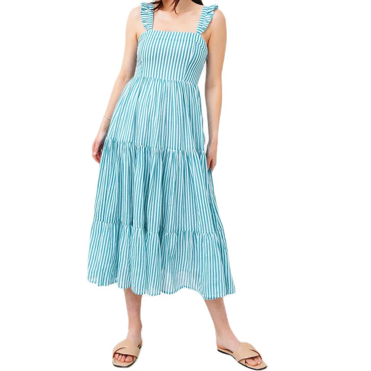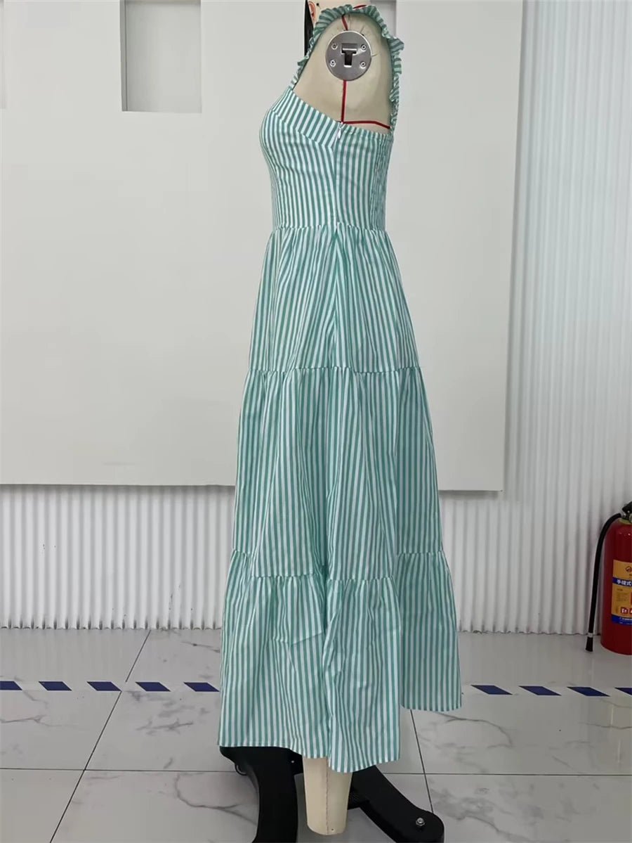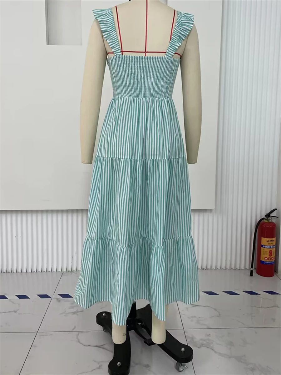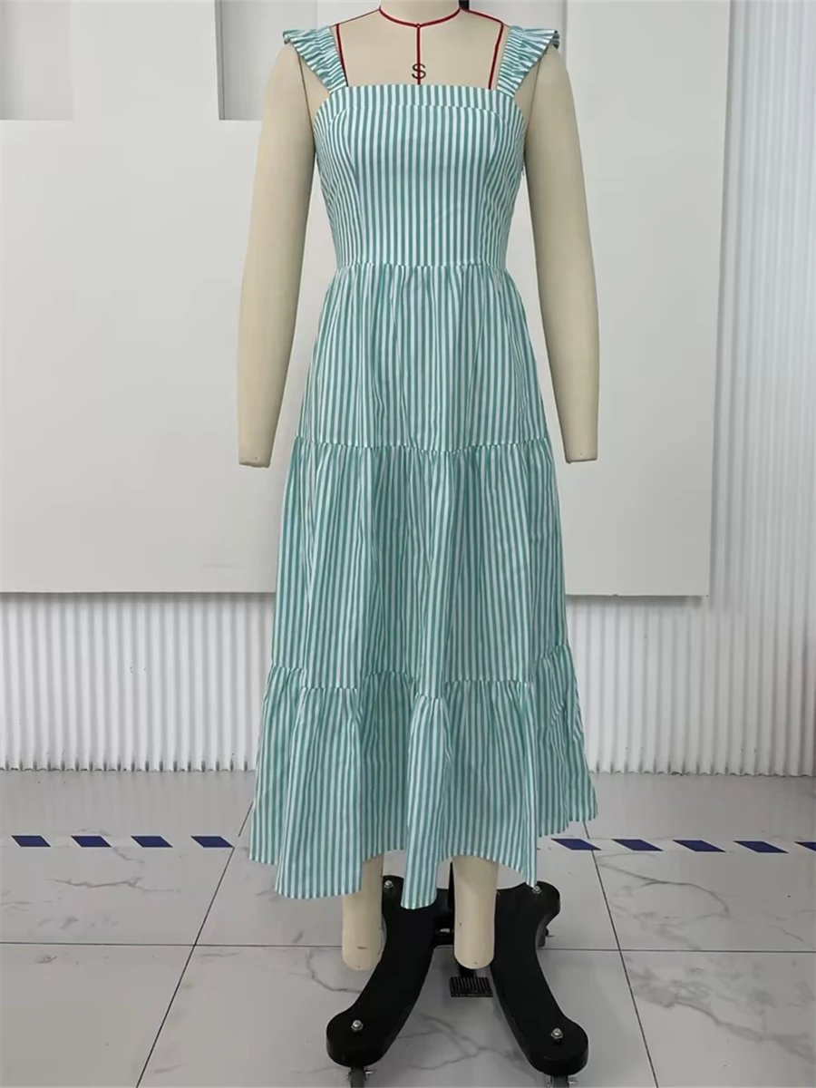 Cyflymder Women's Elegant Summer Midi Dress Stripe Sleeveless Backless Straps Tiered A-Line Dress for Summer Casual A-line Dress