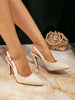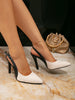 Cyflymder Women's Fashion New Flats, Beige Flats, Linen Splicing Pu Leather, Ultra High Heels, Stiletto Heels, Pointed Toe Shoes, Slingbac