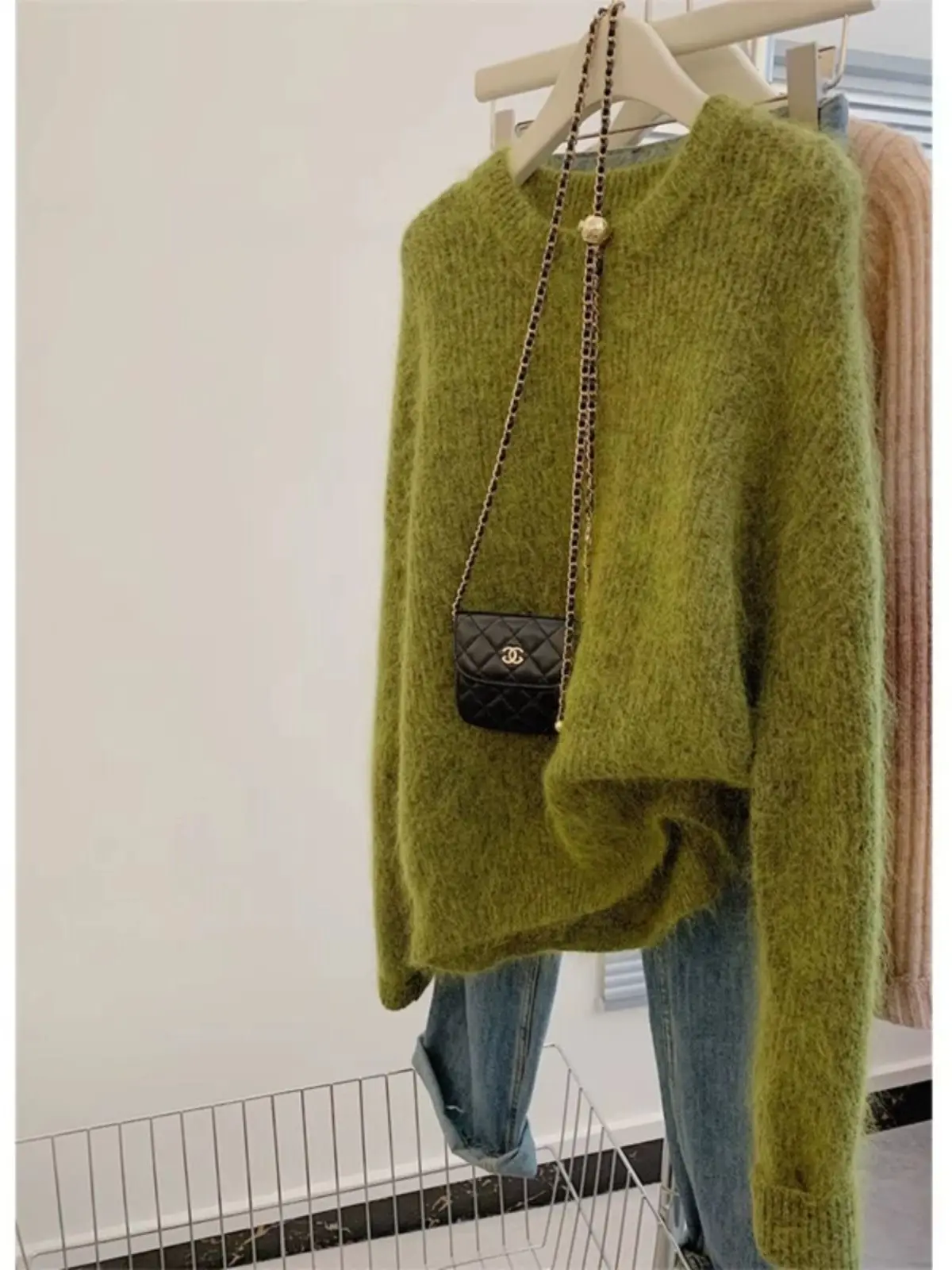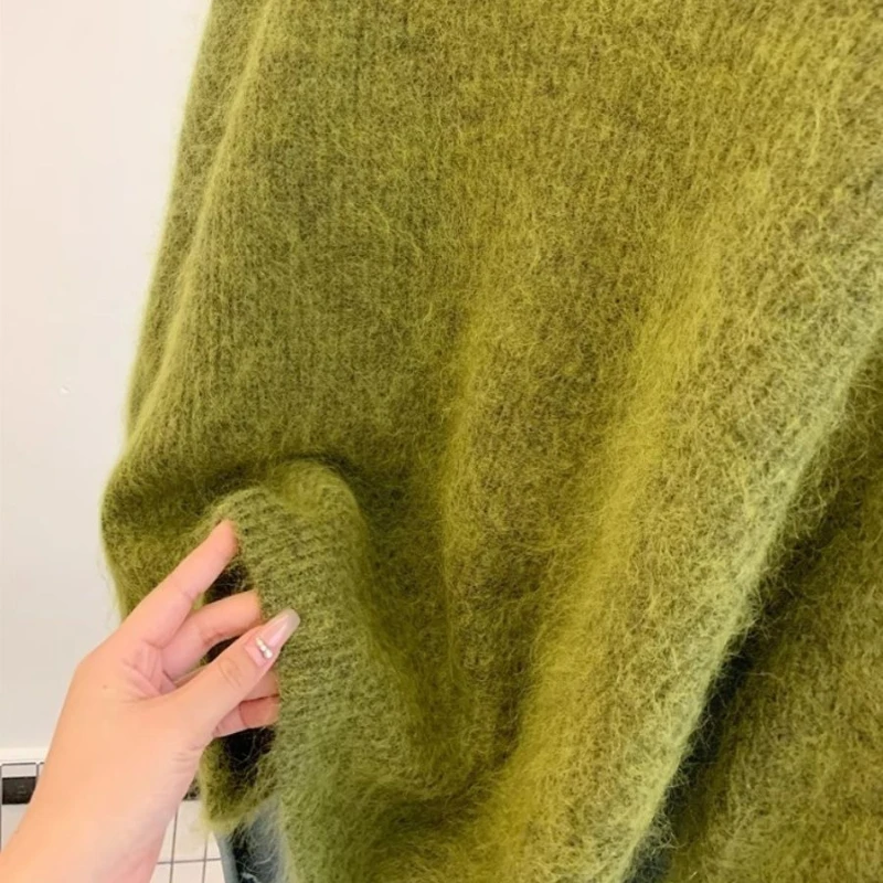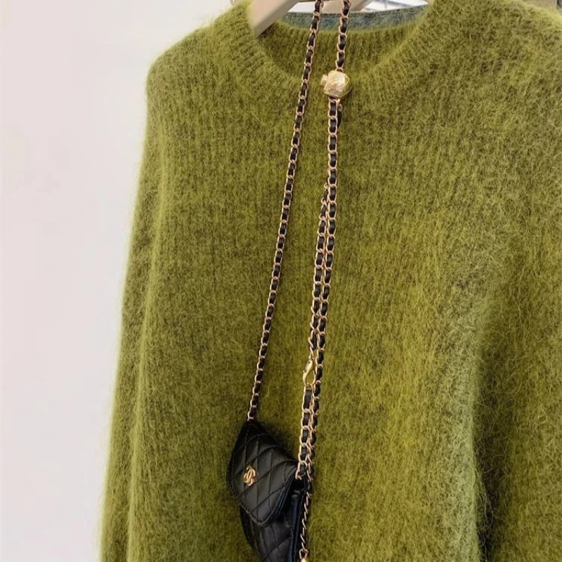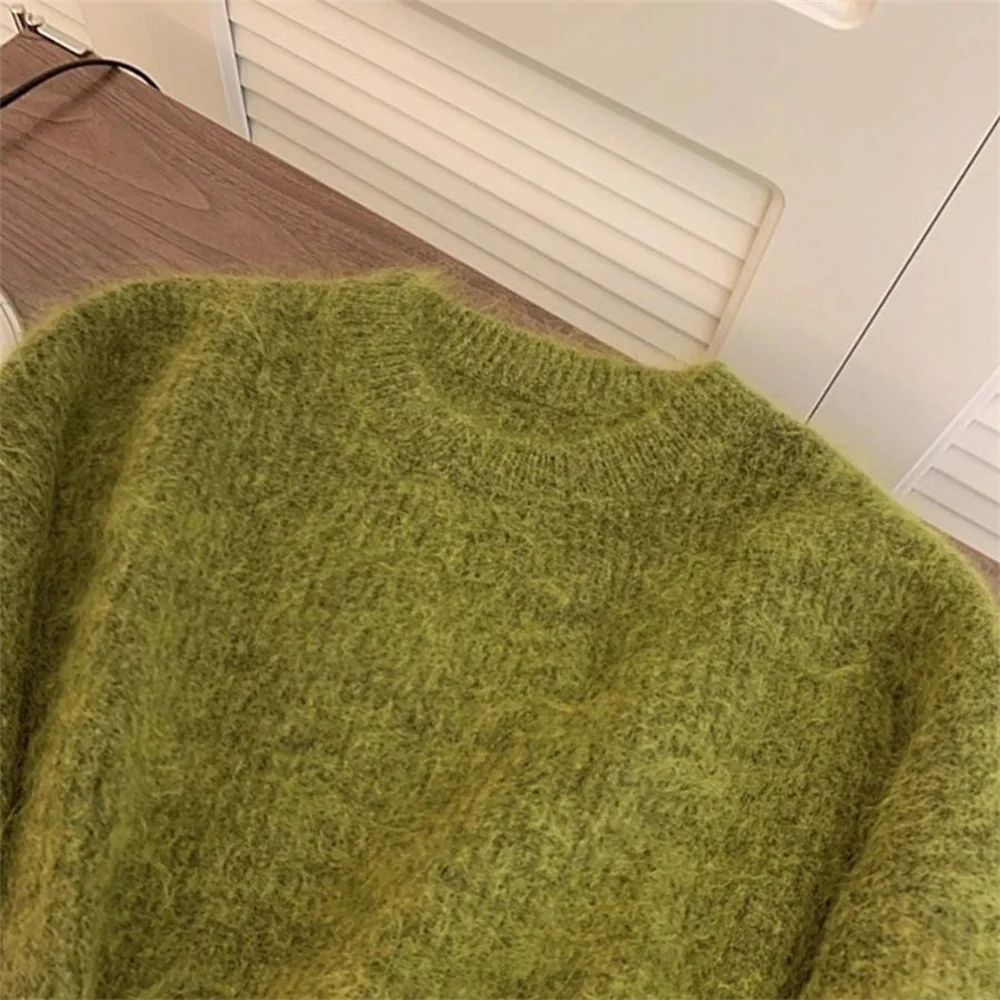 Cyflymder Women's Fashion Simple Casual Green Soft All Match Knitted Sweater Female O Neck Long Sleeve Loose Pullover Tops Sweaters Winter