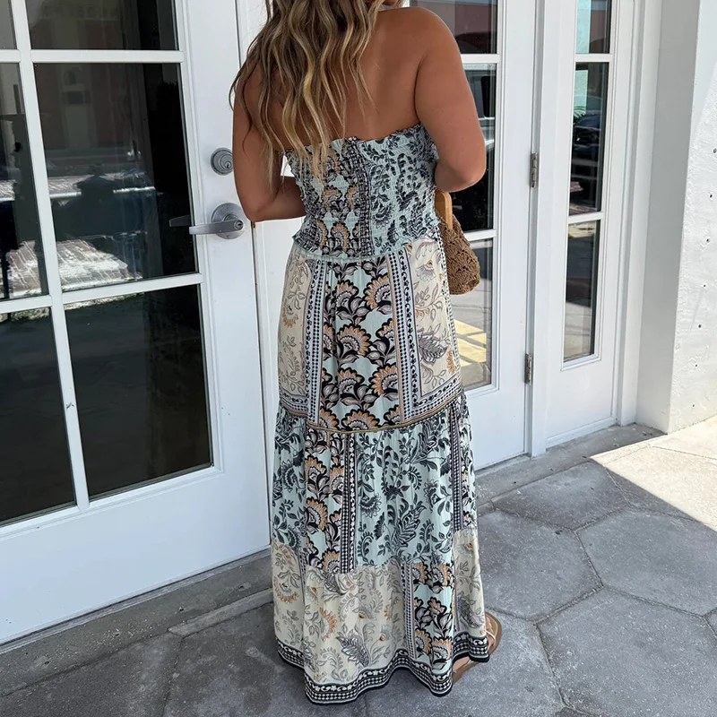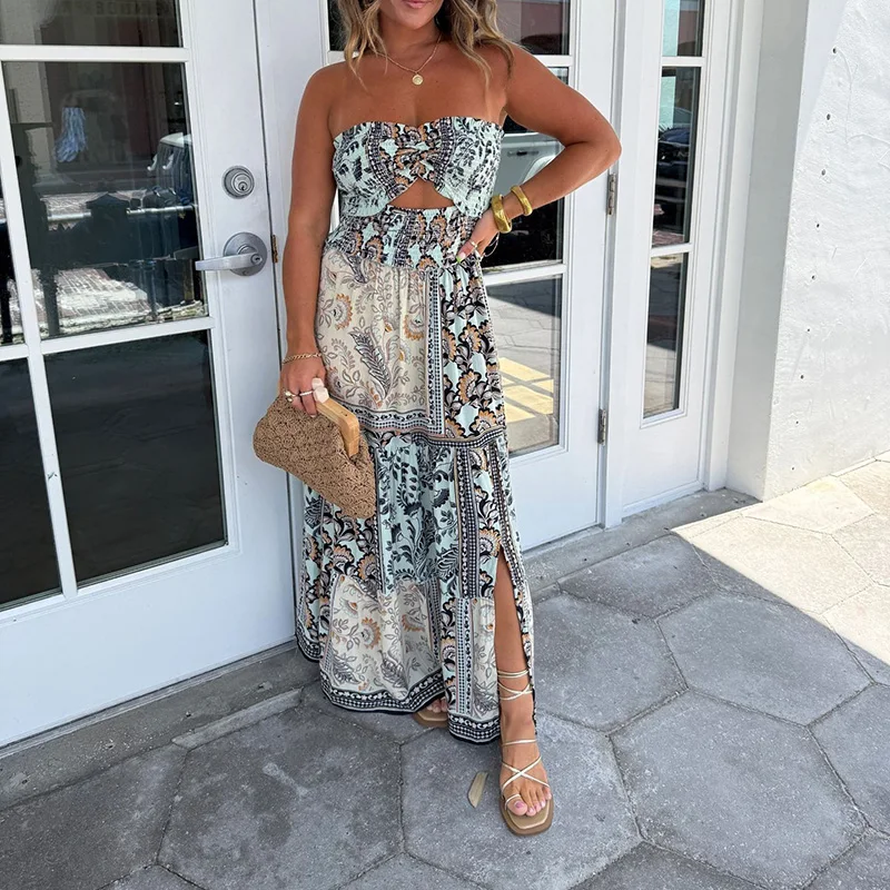 Cyflymder Women's Fashion Sleeveless Hight Waist Party Dress Sexy Backless Split Vacation Dress Elegant Strapless Hollow Out Holiday Dress