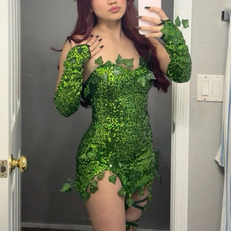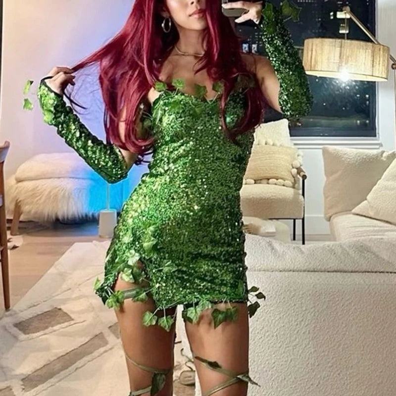 Cyflymder Womens Halloween Forest Fairy Elf Cosplay Dress Up Costume Sequin Dress Outfits Halloween Fancy Dress with Gloves