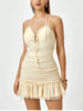 Cyflymder Women's Halter Backless Cut Out Mini Dress Lace Up Ruffle Sexy Fashion Casual Party Cami Short Dresses Beige Summer