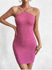 Cyflymder Women's Halter Backless Knit Mini Dress Off Shoulder Tie Up Sexy Fashion Party Beach Short Dresses HotPink Summer