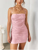 Cyflymder Women's Halter Spaghetti Straps Jacquard Mini Dress Backless Lace Up Sexy Fashion Party Club Short Dresses Pink Summer