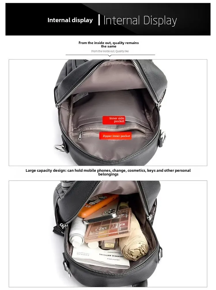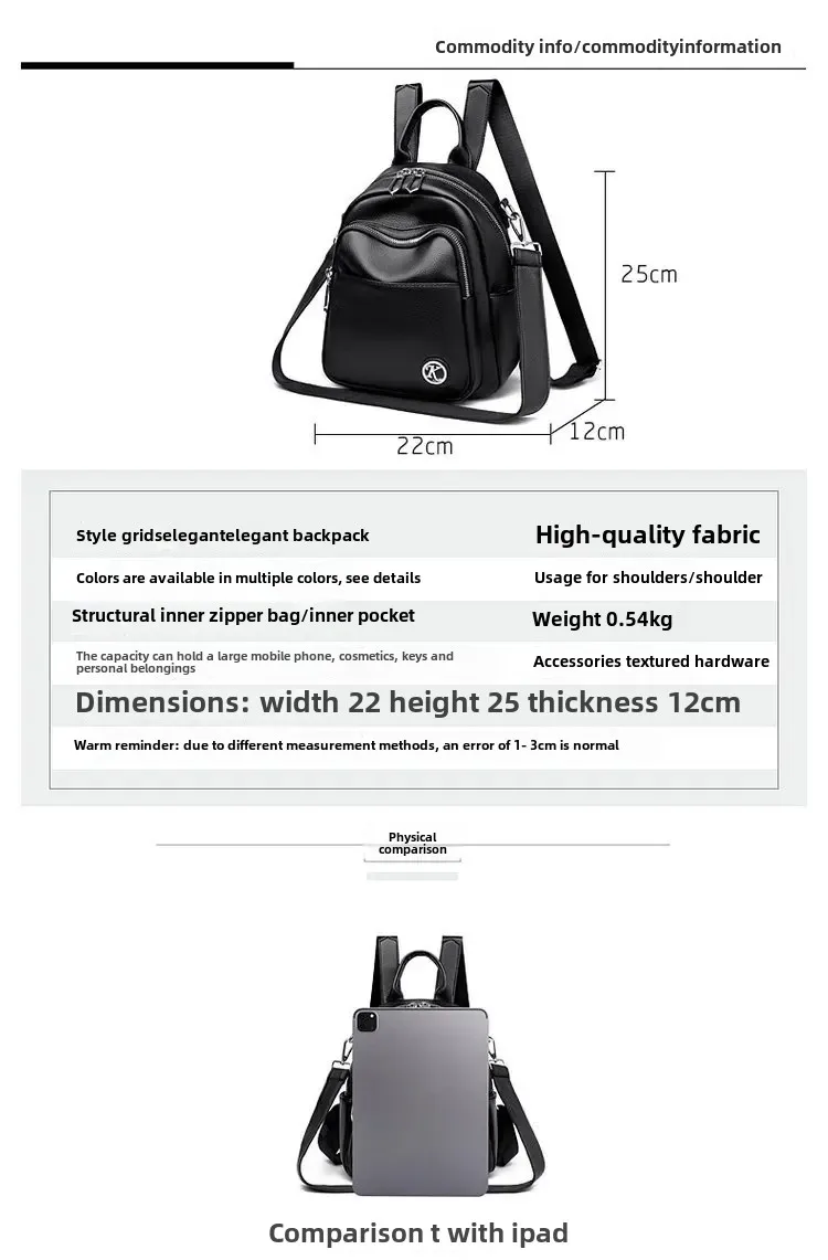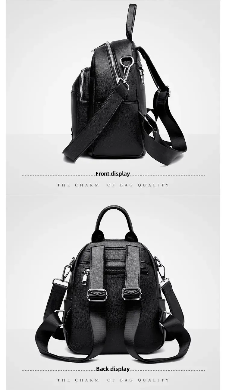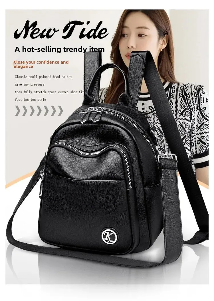 Cyflymder Women's Large Capacity Casual Travel Soft Leather Backpack Fashionable Versatile Hot Sale Of The Season New Style Double Shoulde