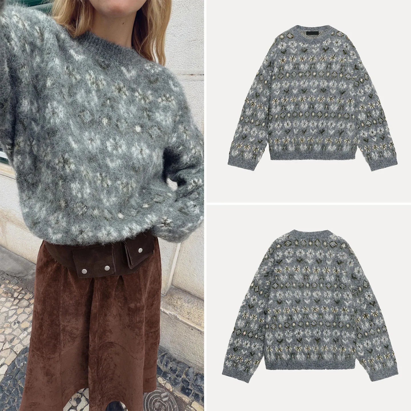 Cyflymder Women's Long Sve Knitted Sweater Color Fade Effect Floral Embroidery Autumn Faion Casual round Ne Pullover for Teens