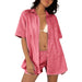 Cyflymder Women's Lounge Wear Outfits Summer Fall Beach Streetwear Short Sleeve Lapel Neck Button Down Tops Elastic Waist Shorts Plaid Set