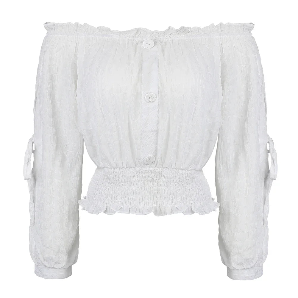 Cyflymder Womens Medieval Blouse Vintage Off Shoulder Shirts Half Sleeve Shirt Medieval Boho Blouses Pirate Crop Top Carnival Party Outfit