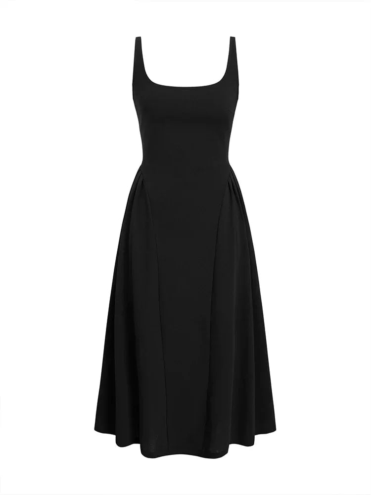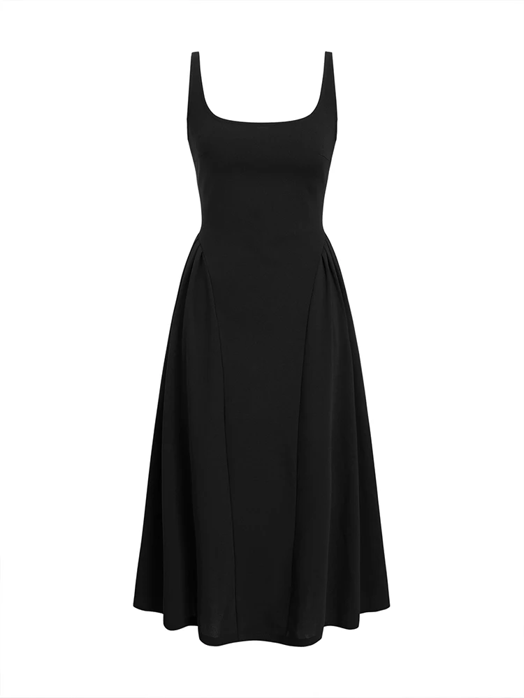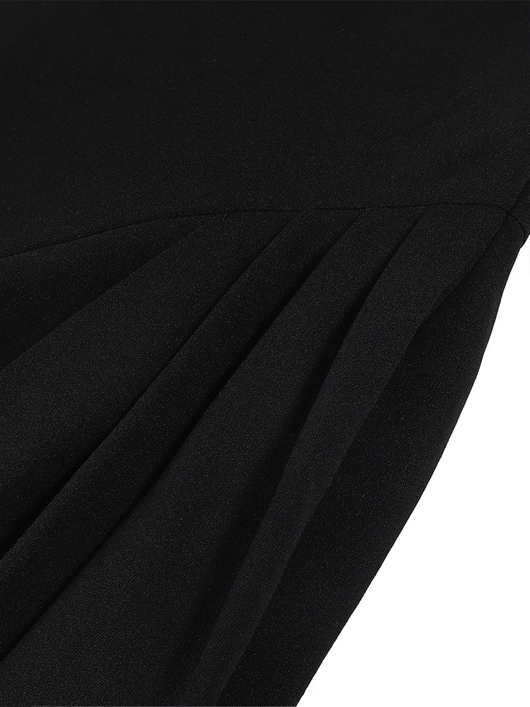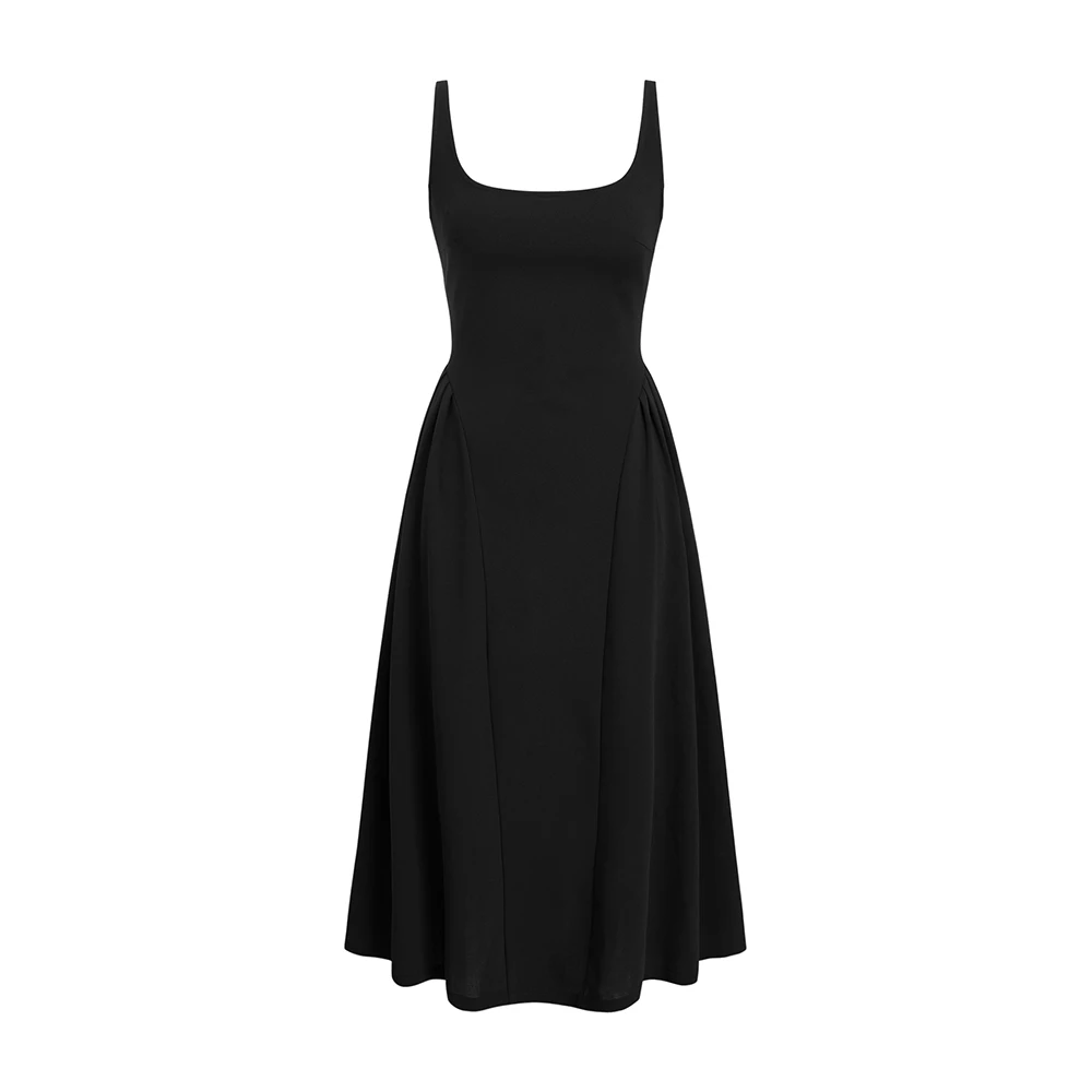 Cyflymder Women's Midi Dress Y2K Style Black Strapless Square Neck Long Sleeve Loose Casual Best for Spring and Summer