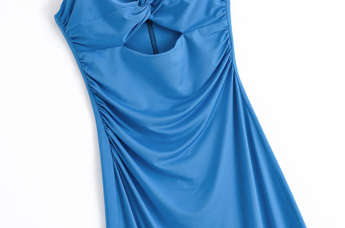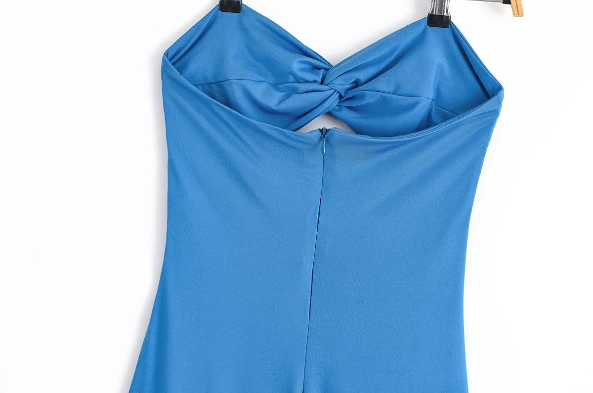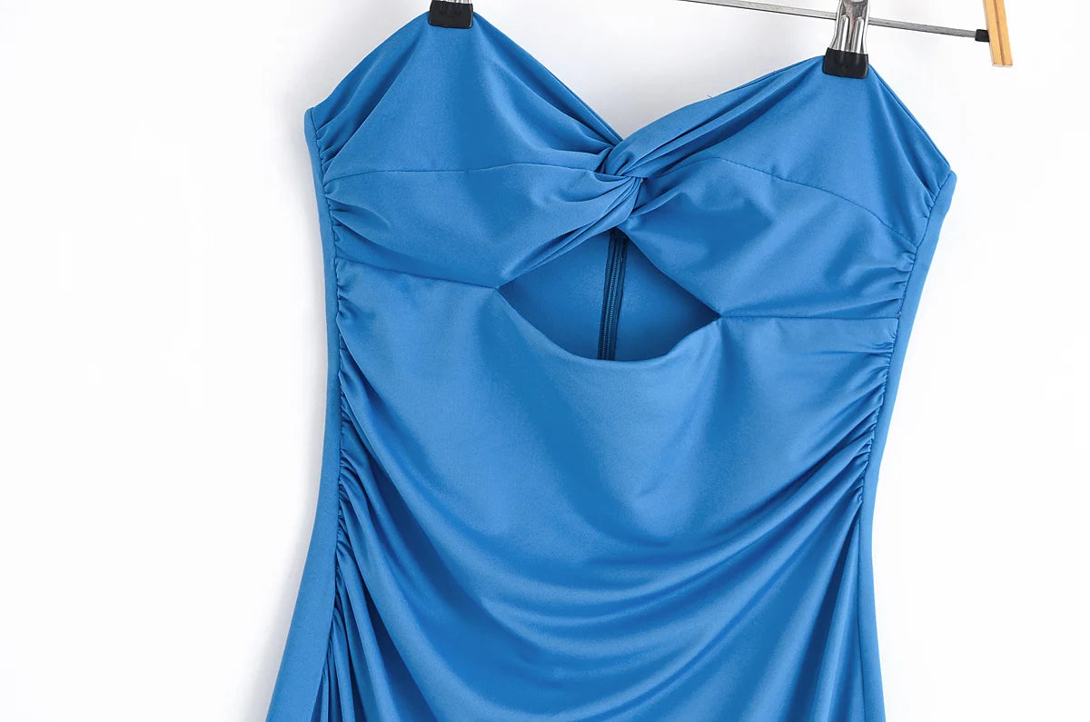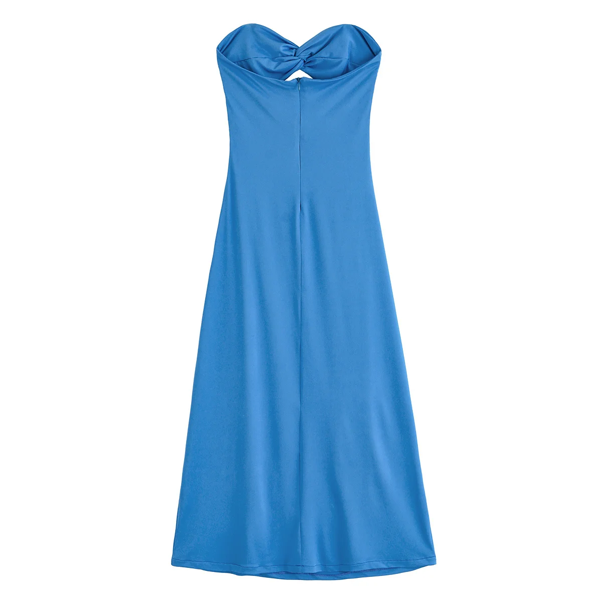 Cyflymder Women's new fashion open design slim pleated strapless MIDI dress retro sleeveless backless women's dress