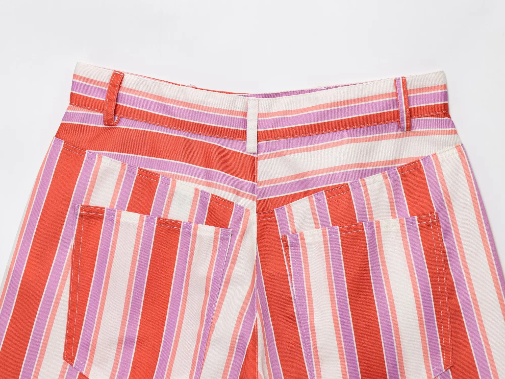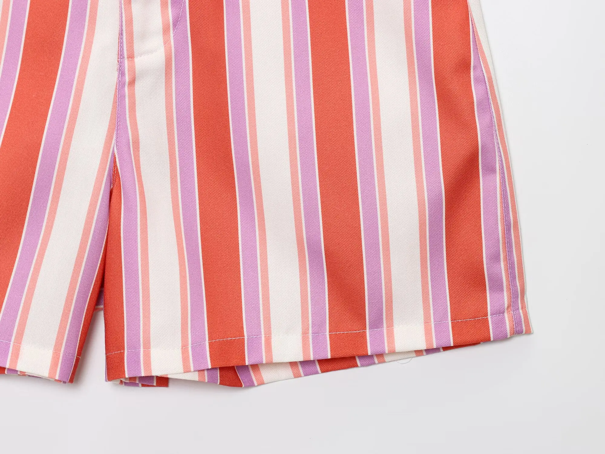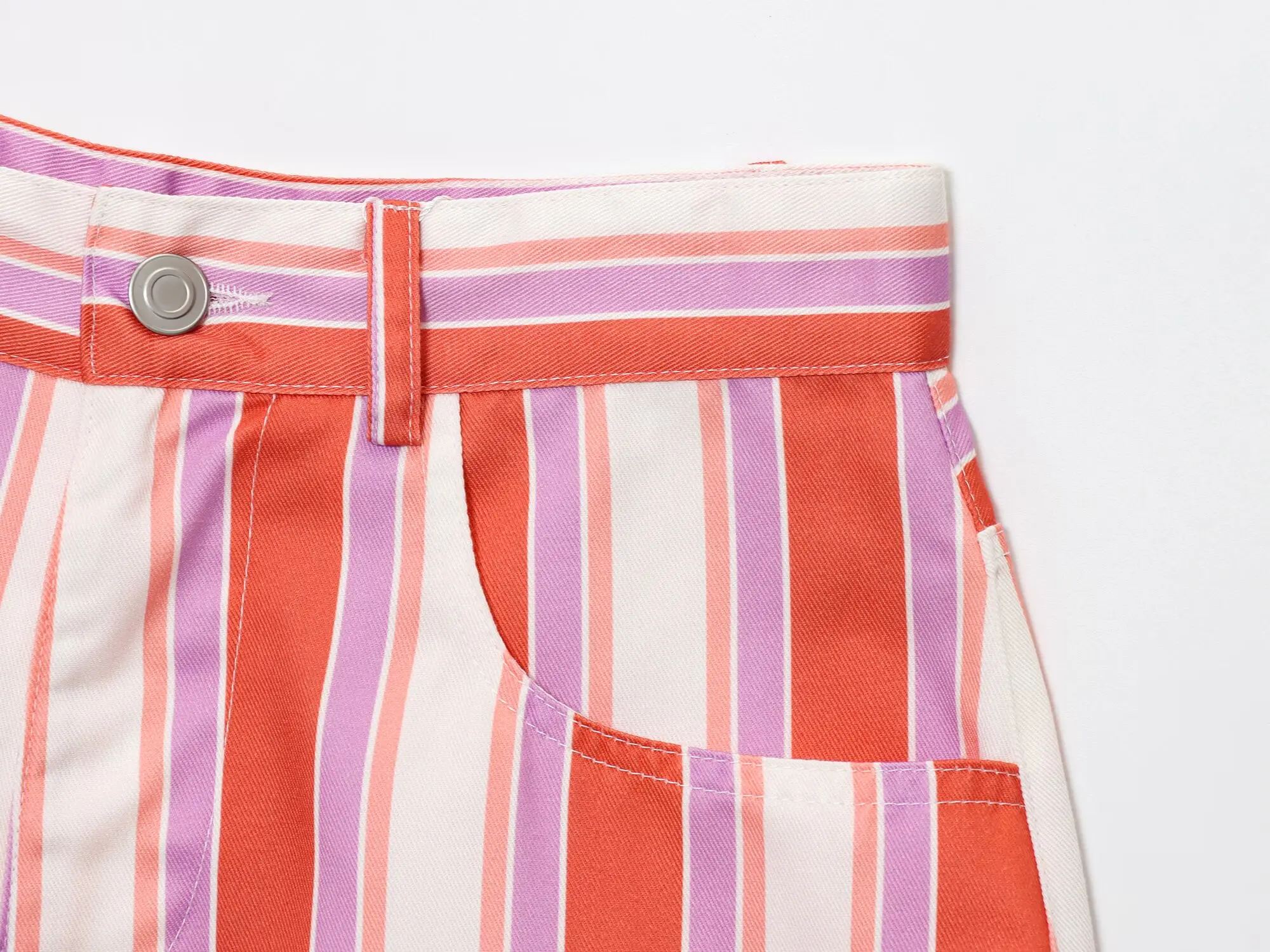 Cyflymder Women's new fashion side pocket decoration casual striped shorts retro high waisted zipper women's shorts