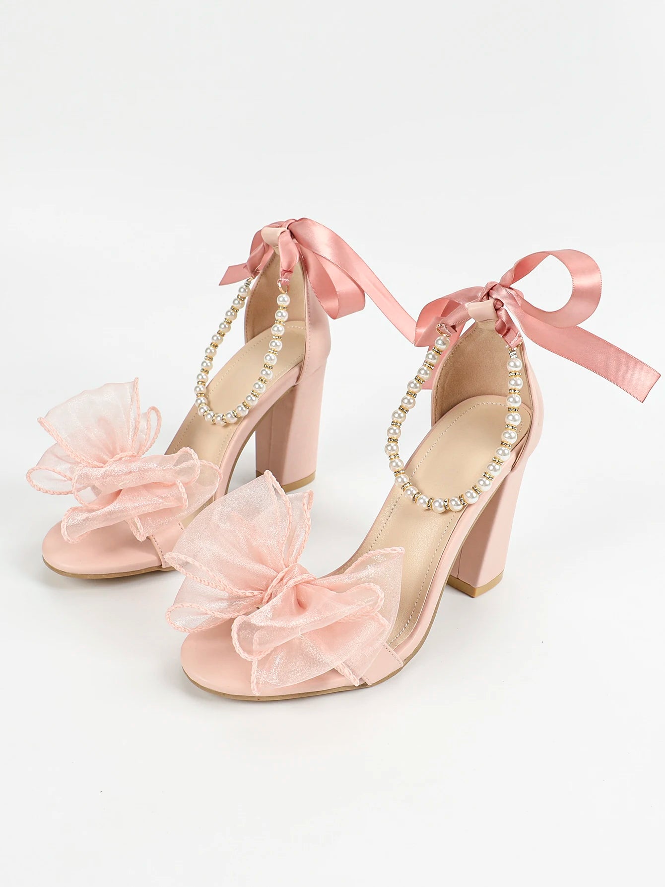 Cyflymder Women's New Sandals Pink Sandals High Heels Sandals Loli Style Cute Bow Gorgeous Pearl Beads Wedding Party Sexy Romantic Thick