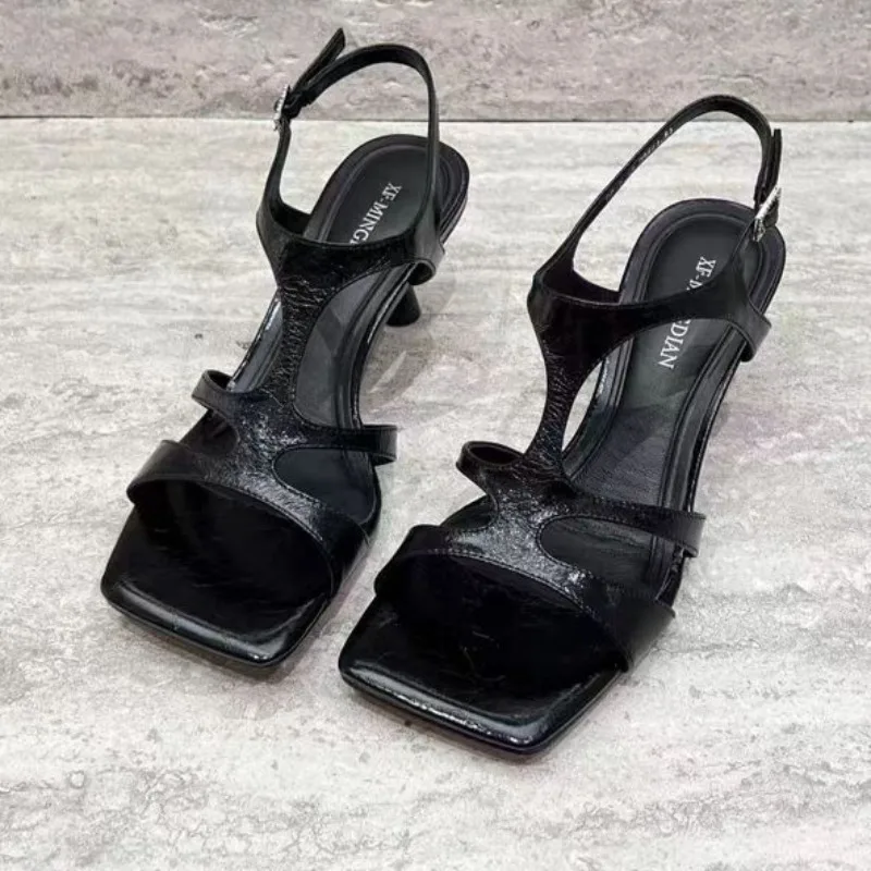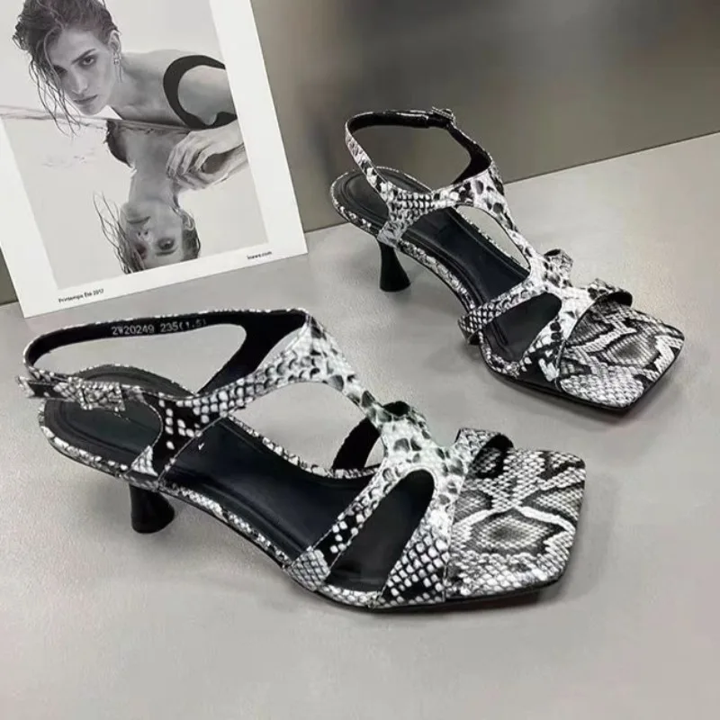 Cyflymder Women's Sandals 2025 Sexy Square Toe Buckle High Heels Basic Casual Party Pumps Women's Fashion Summer Sandals 35--42 Sizes