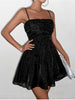 Cyflymder Women's Sexy Backless Tie Up Sequin Cami Mini Dress Sleeveless Double Layer Mesh Fashion Club Party Short Dresses Black