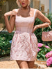 Cyflymder Women's Sleeveless Adjustable Straps Jacquard Mini Dress Backless Double Layer Summer Holiday Party Short Dresses Pink