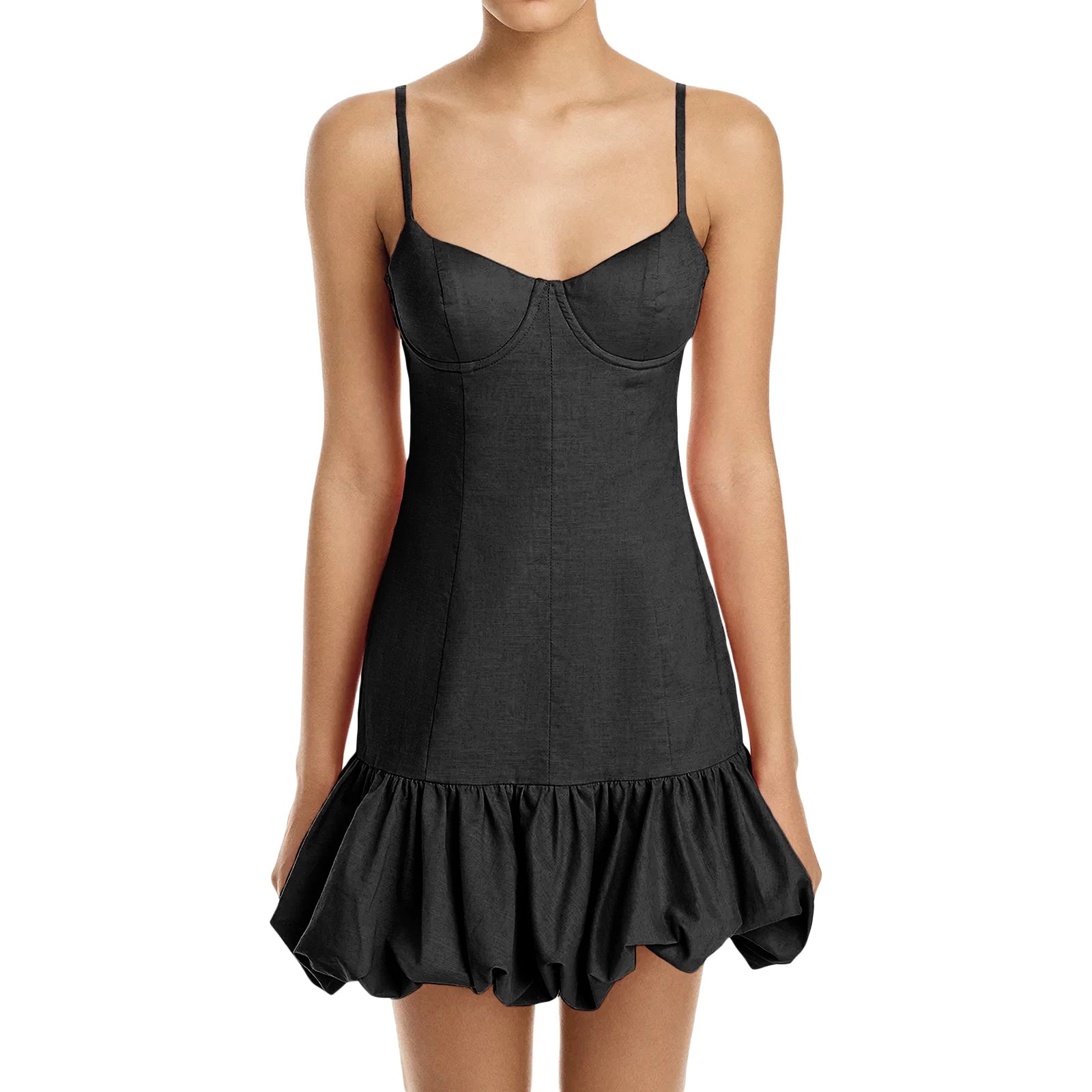 Cyflymder Women's Spaghetti Strap Bubble Mini Dress Solid Color Sleeveless Backless Puffy Short Cami Dresses for Party Nightclub Vestidos