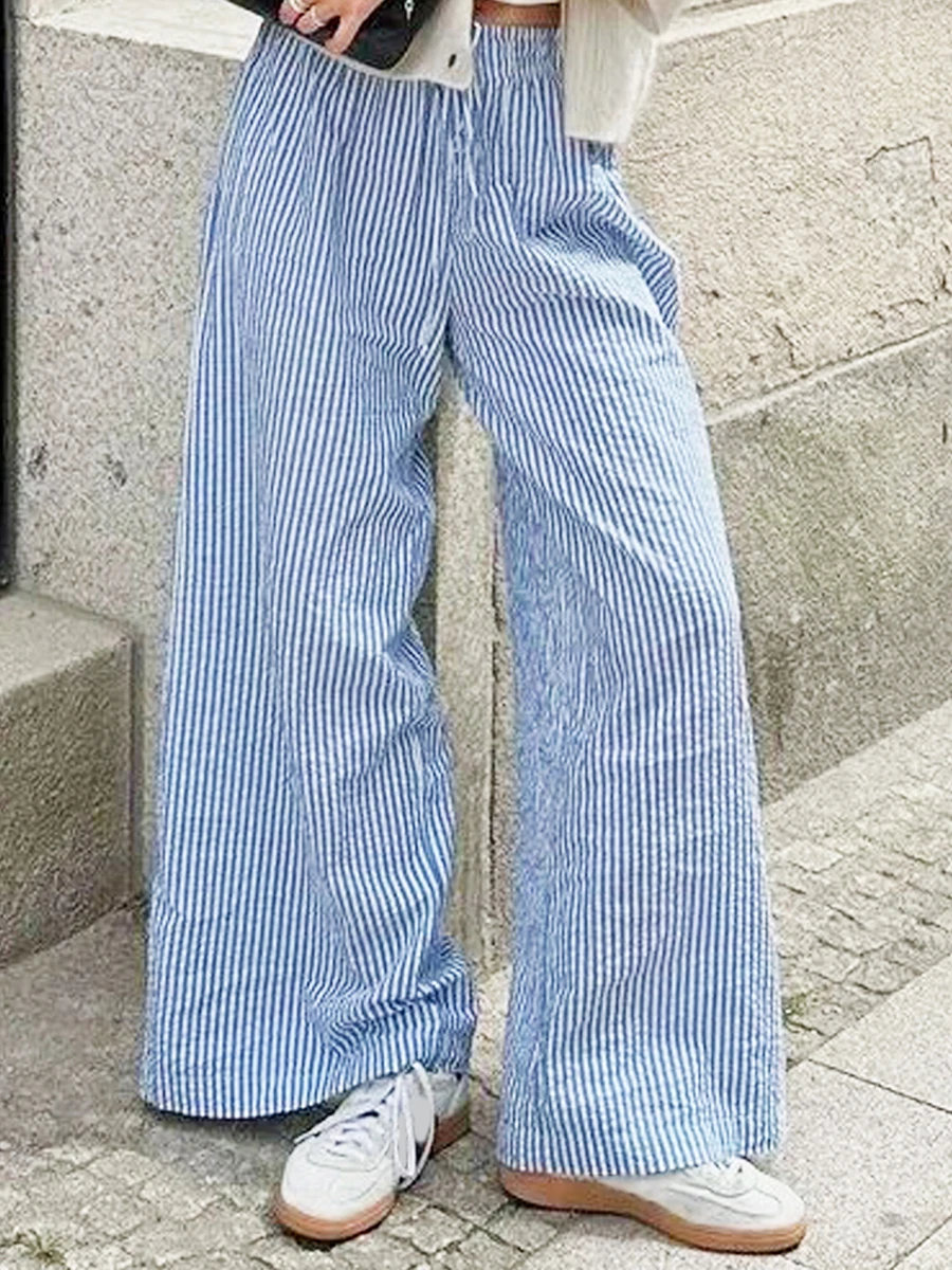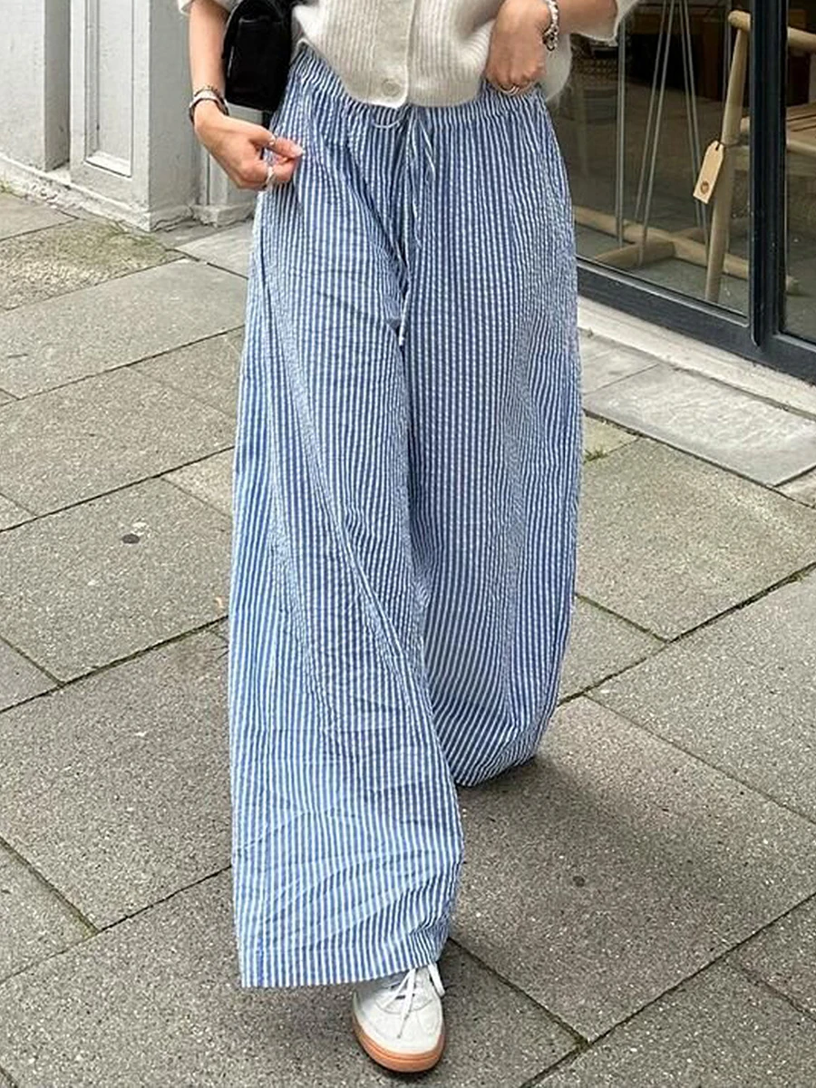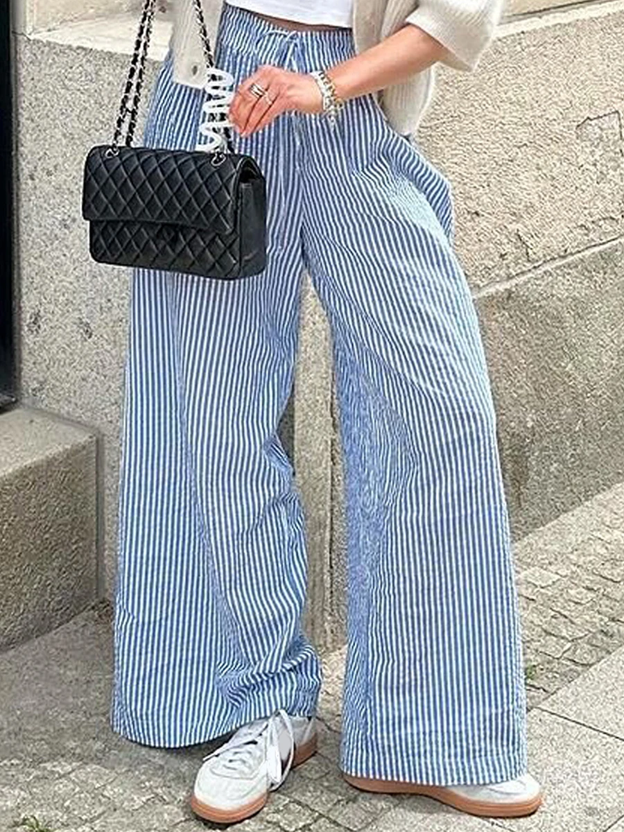 Cyflymder Women's Spring Summer Baggy Pants Fashion Drawstring Waistband Loose Wide Leg Striped Pants Y2K Streetwear