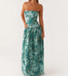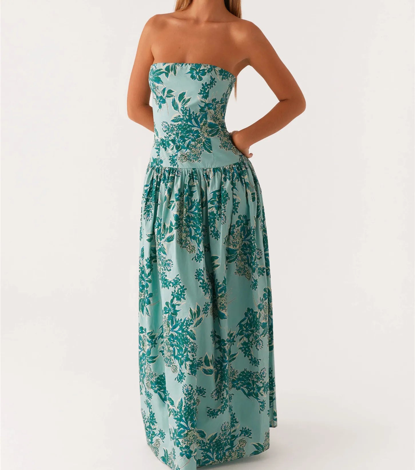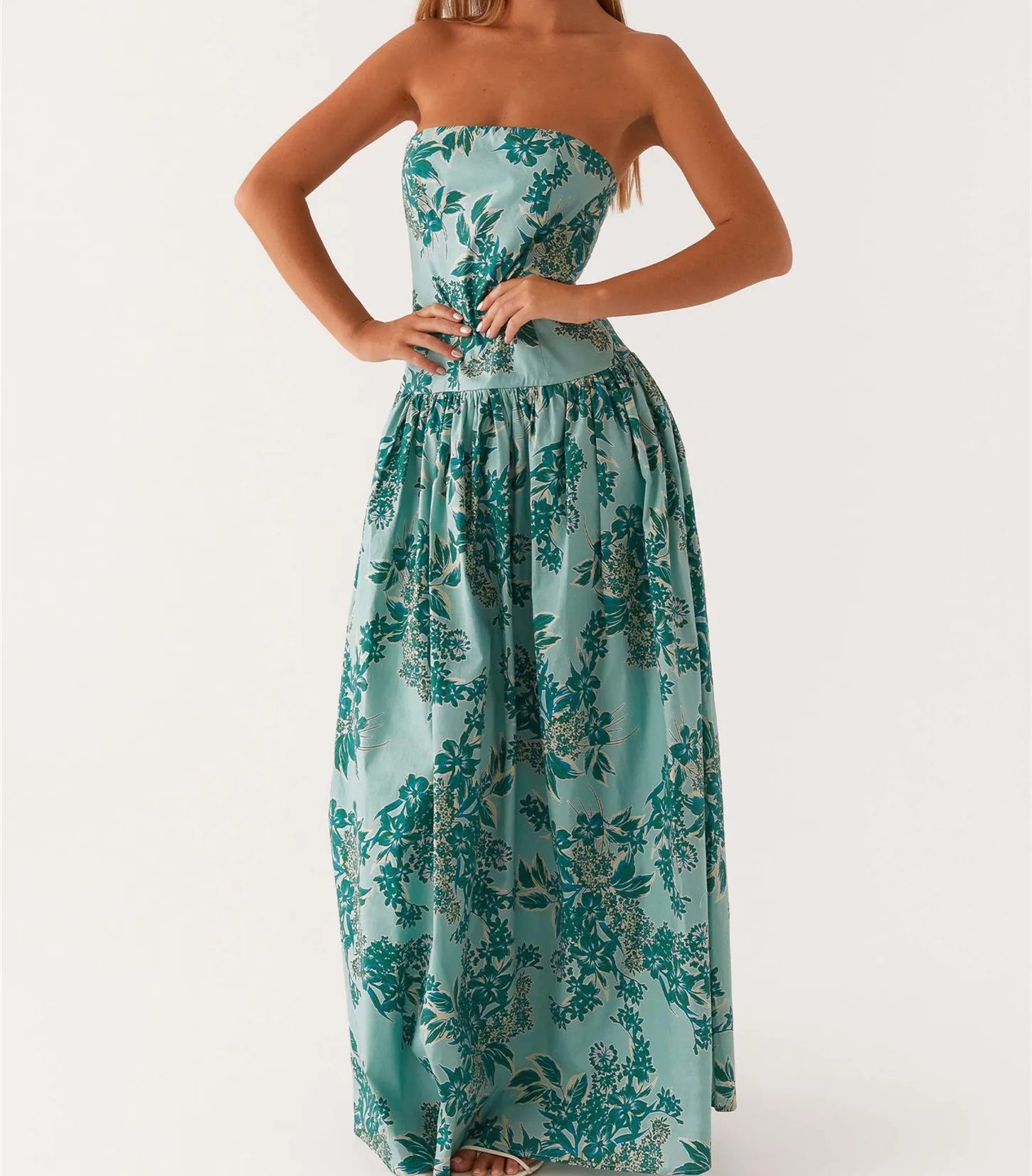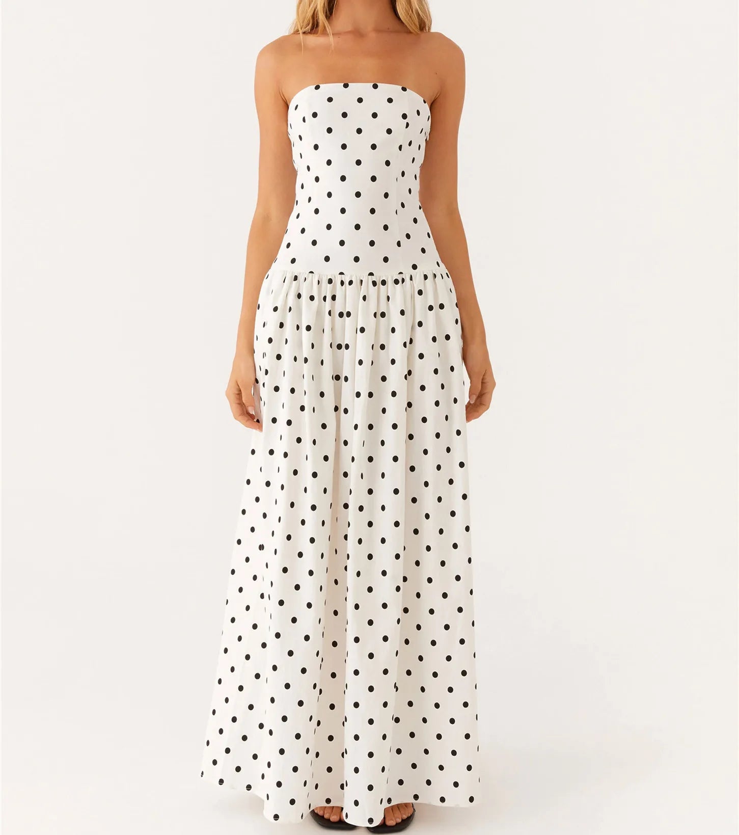 Cyflymder Women's Strapless Dress Stylish Dot Print/Floral Print Sleeveless Tube Long Dress for Summer Holiday Party Clubwear