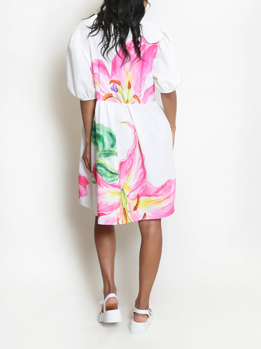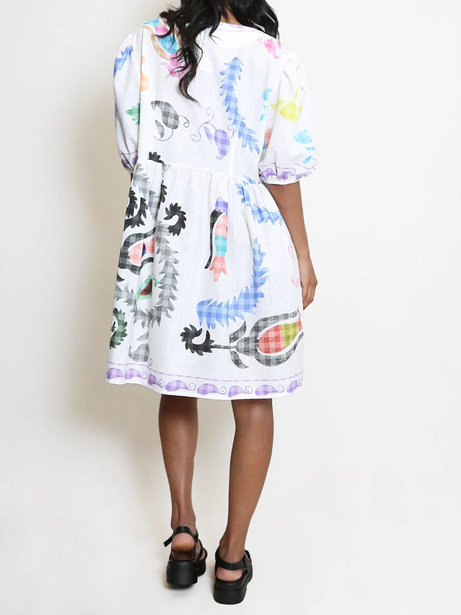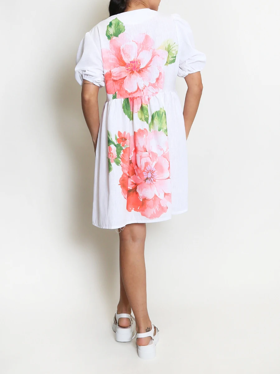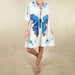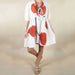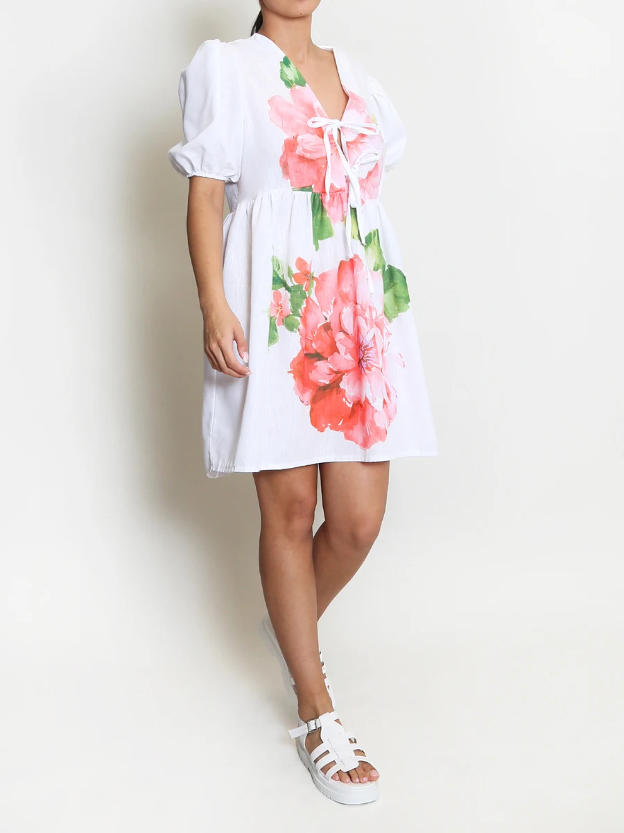Cyflymder Women's Summer A-Line Dress Floral Print Short Puff Sleeve Tie Front V-Neck Loose Fit Shirt Babydoll Dress Holiday Beach