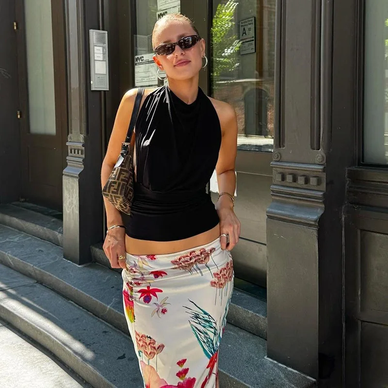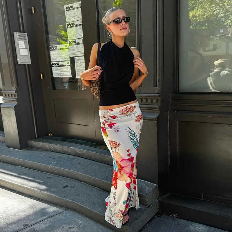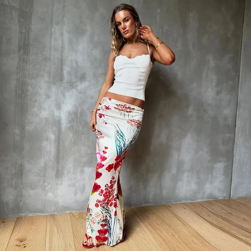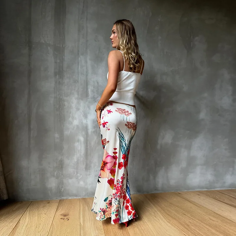Cyflymder Women's Summer Bodycon Long Skirt Casual High Waist Floral Print Slim Fit Skirt Elegant Fishtail Skirt Party Streetwear Skirt