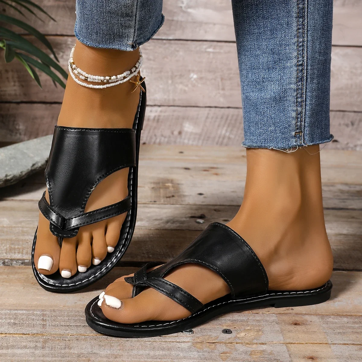 Cyflymder Women's Summer New Simple Solid Color Slippers Daily Walking Comfortable Shallow Slip-on Ladies Open Heel Sandals Plus Size